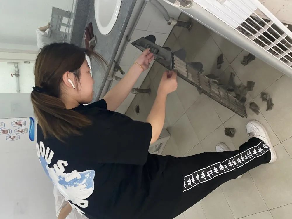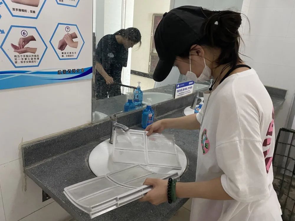 本学期学习即将结束,我院组织学生干部清理教楼各个教室空调。先由学生会主席方武为各个部门分配任务,接着各部门在部长的带领下对空调进行拆卸、清洗、组装,在活动过程中每个学生干部都自带了刷子抹布,相互配合、分工明确,认真清洗空调滤网,擦拭外壳。在大家的共同努力下,4B教楼2至5楼的每间教室空调都清理完毕。