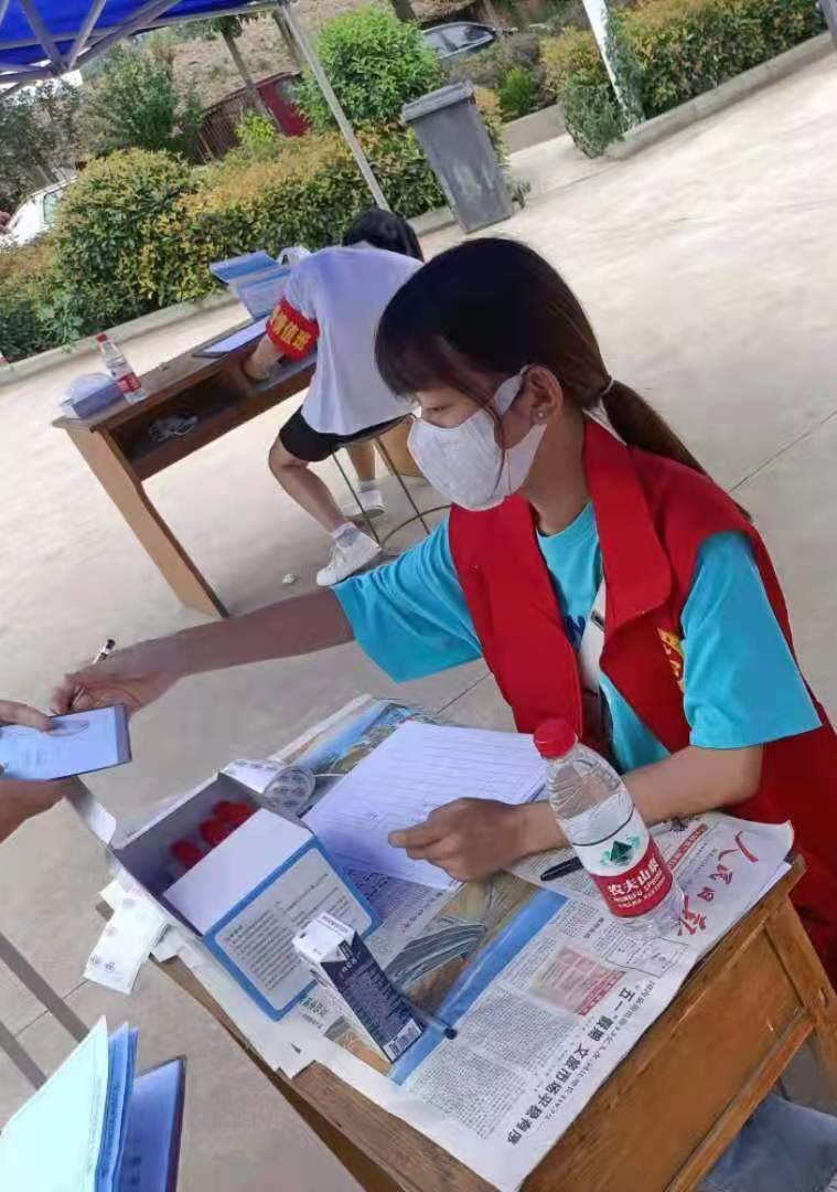 8月9日,在接到当地镇政府召集志愿者的通知,20级商务英语2班黄鑫雨第一时间报名参加了河南省漯河市召陵区召陵镇志愿服务活动。黄鑫雨主要负责的工作是帮助医护人员进行核酸检测、预约登记、维持秩序等。在这场“战疫”中,黄鑫雨用实际行动诠释了青年人的家国情怀和责任担当,在志愿服务工作中证明了何为青春之责任,何为青春之风采。