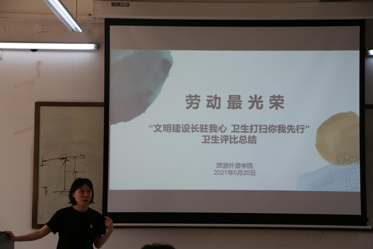 会议开始,我院刘好好老师对文明劳动月做出了总结,分析了旅院各班的卫生成绩,指出我院存在的问题并加以改正,在此期间我院学生辛勤劳作,不辞辛苦的付出也得到了相应的回报,只要努力就一定有所收获,总结过后由纪律卫生部成员对其本次活动取得名次的班级进行颁奖。