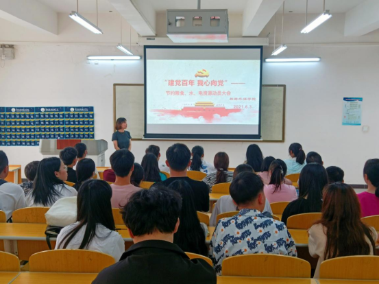 2021年6月1日下午,我院在4B211召开“建党百年 我心向党”——节约粮食、水、电资源动员大会,出席本次大会的有旅游外语学院刘好好老师及各班生活委员及部分同学代表。