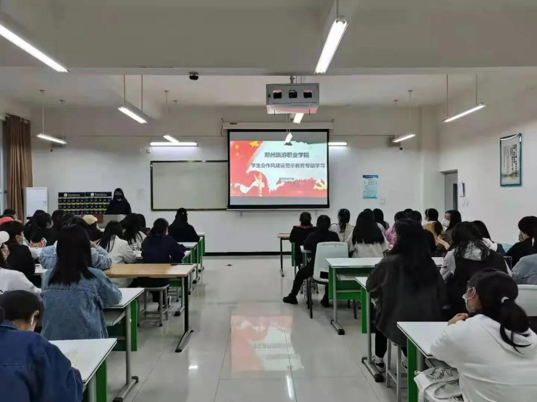 为进一步学习贯彻《关于落实共青团和学联对高校学生会(研究生会)指导管理责任的若干规定(试行)》和《关于学联学生会工作人员改进作风服务同学的若干规定》文件精神,4月21日下午,旅游外语学院在4B教学楼307教室组织学生干部作风建设警示教育专题学习。会议由沈晋旭老师主持,旅游外语学院全体团学干部代表参与了此次会议。