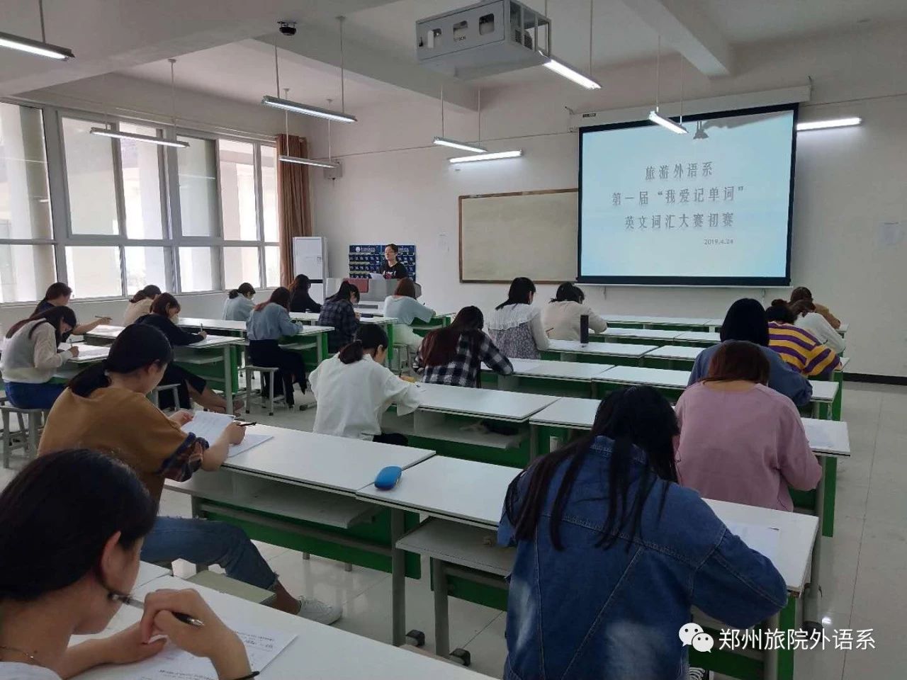 4月24日下午3点20分,旅游外语系第一届“我爱记单词”英文词汇大赛初赛成功举行。本次大赛由旅游外语系旅游英语教研室承办,该教研室组织有序,学生参与人数众多,外语系9个专业两个年级(17级和18级)近300名学生参加了此次比赛。此次比赛共6个考场,分别是4B211、4B301、4B302、4B303、4B305和4B306,本次初赛预选100人进入下一轮决赛。