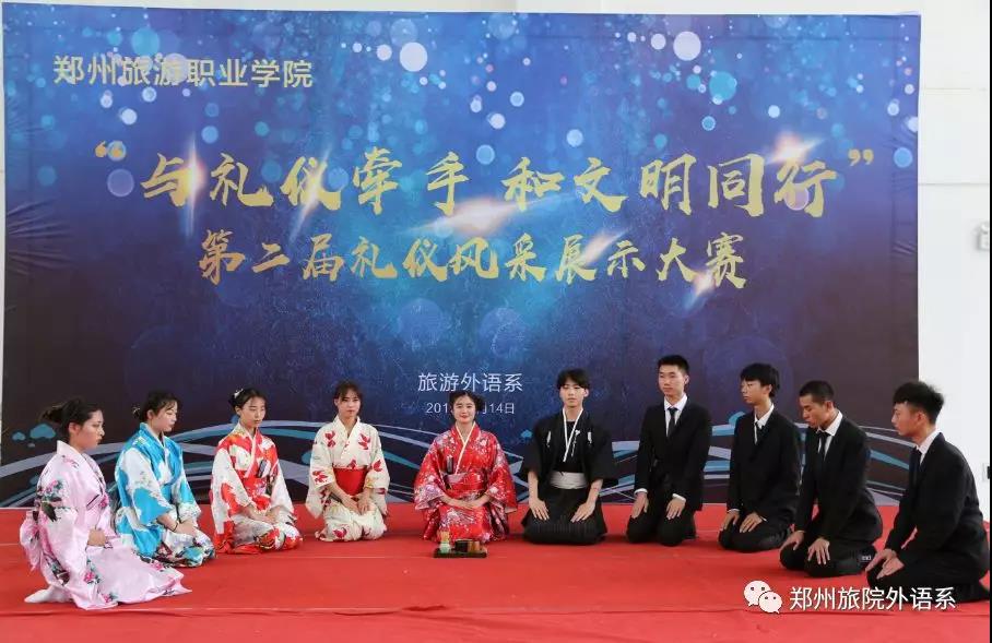 17涉外酒店班、18应用英语班、18国领一班向观众们展示了专业的商务外交礼仪。日语、韩语、俄语等班级通过歌舞、茶道等形式将本专业的民族特色融入到礼仪展示中,使在场观众感受到浓浓的外国文化氛围,场上气氛一度达到高潮。