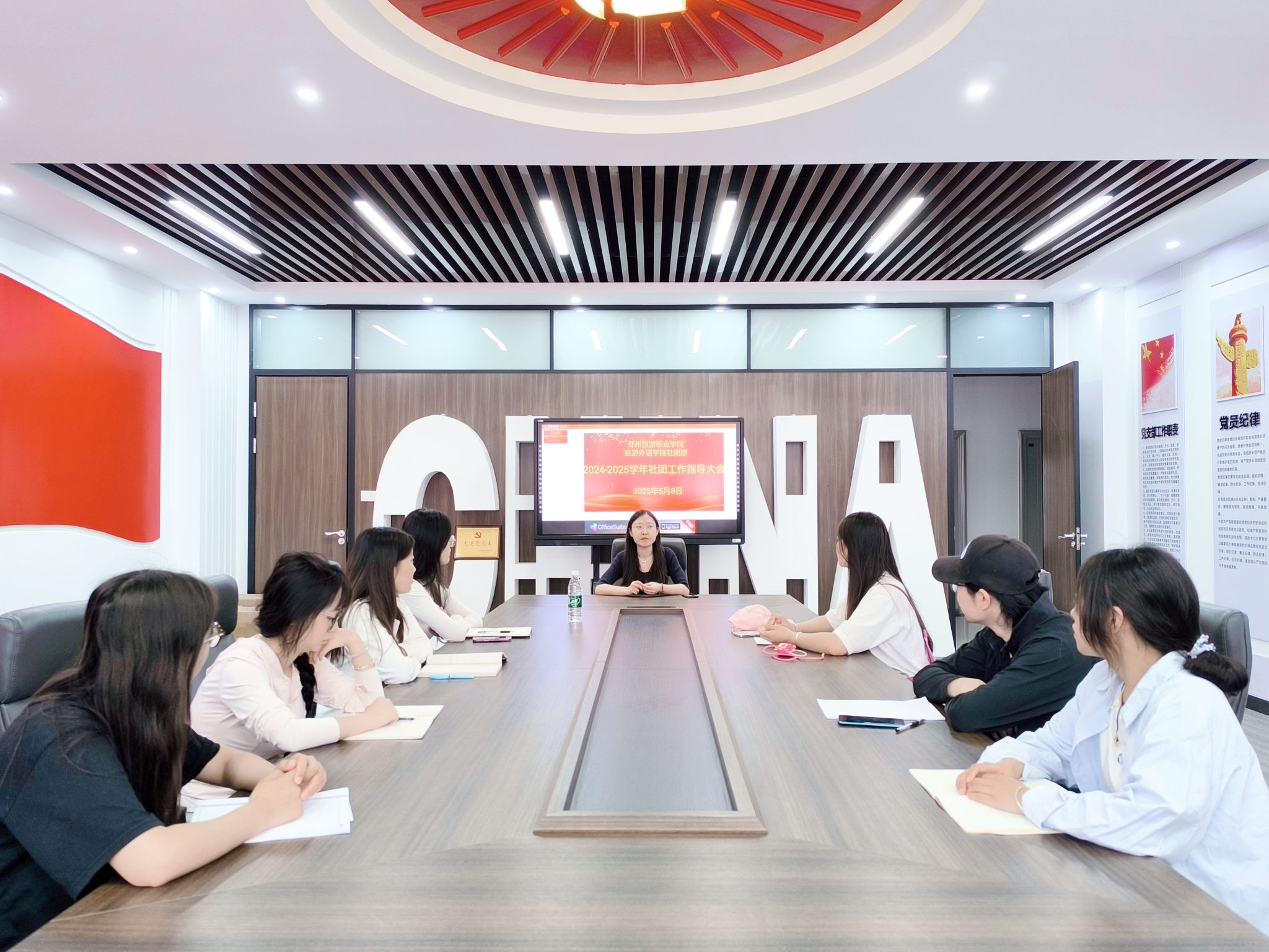 5月8日,旅游外语学院社团工作指导会在清源楼党员活动室顺利召开。旅游外语学院刘怡含老师与各社团社长齐聚一堂,围绕社团发展规划、活动创新等议题展开深入交流。
