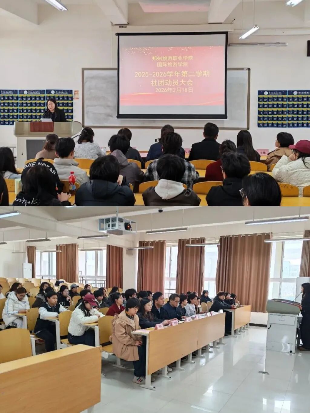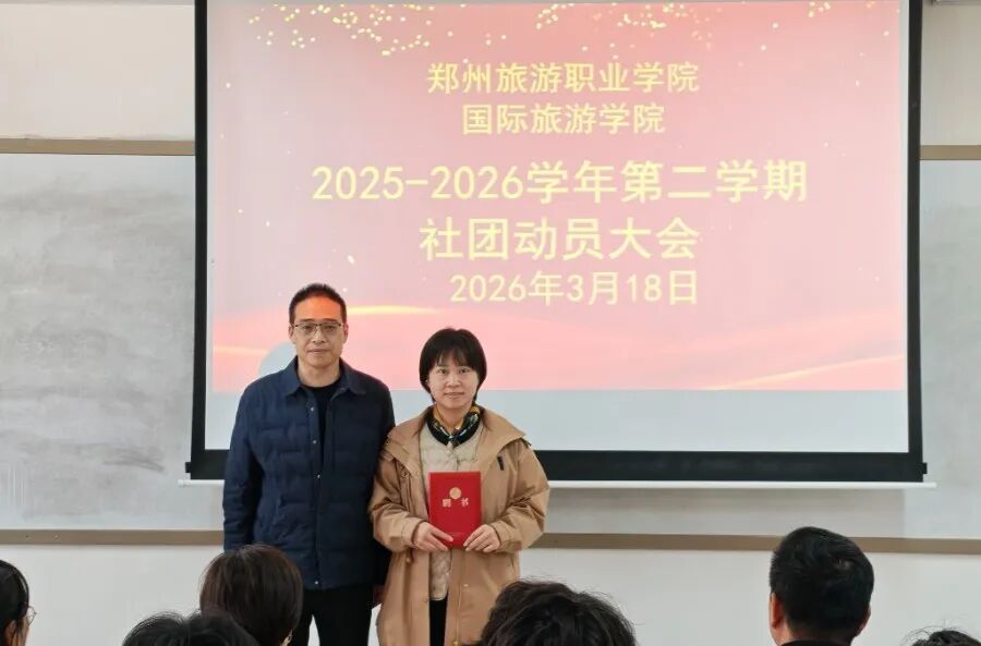 3月18日,国际旅游学院2025-2026学年第二学期社团动员大会在清源楼211教室隆重召开。学院党总支书记肖磊、党总支副书记韩晶、学工办主任沈晋旭出席会议,学院团总支书记刘平平主持大会,各社团指导老师及学生骨干代表参会。