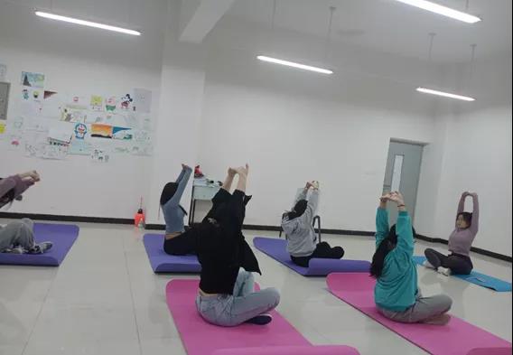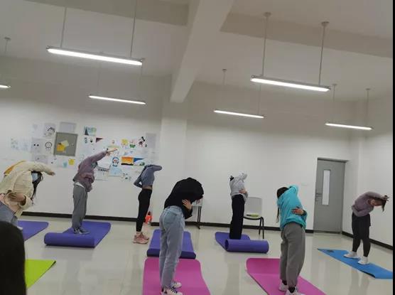 活动期间,二级心理辅导站心教部成员与同学们一起锻炼身体,全身心投入,努力做到标准动作。辛苦学习了一天,同学们利用晚上空闲时间,听听舒缓的音乐,练练瑜伽,吹吹空调的暖风,拉拉筋骨,愉悦身心。