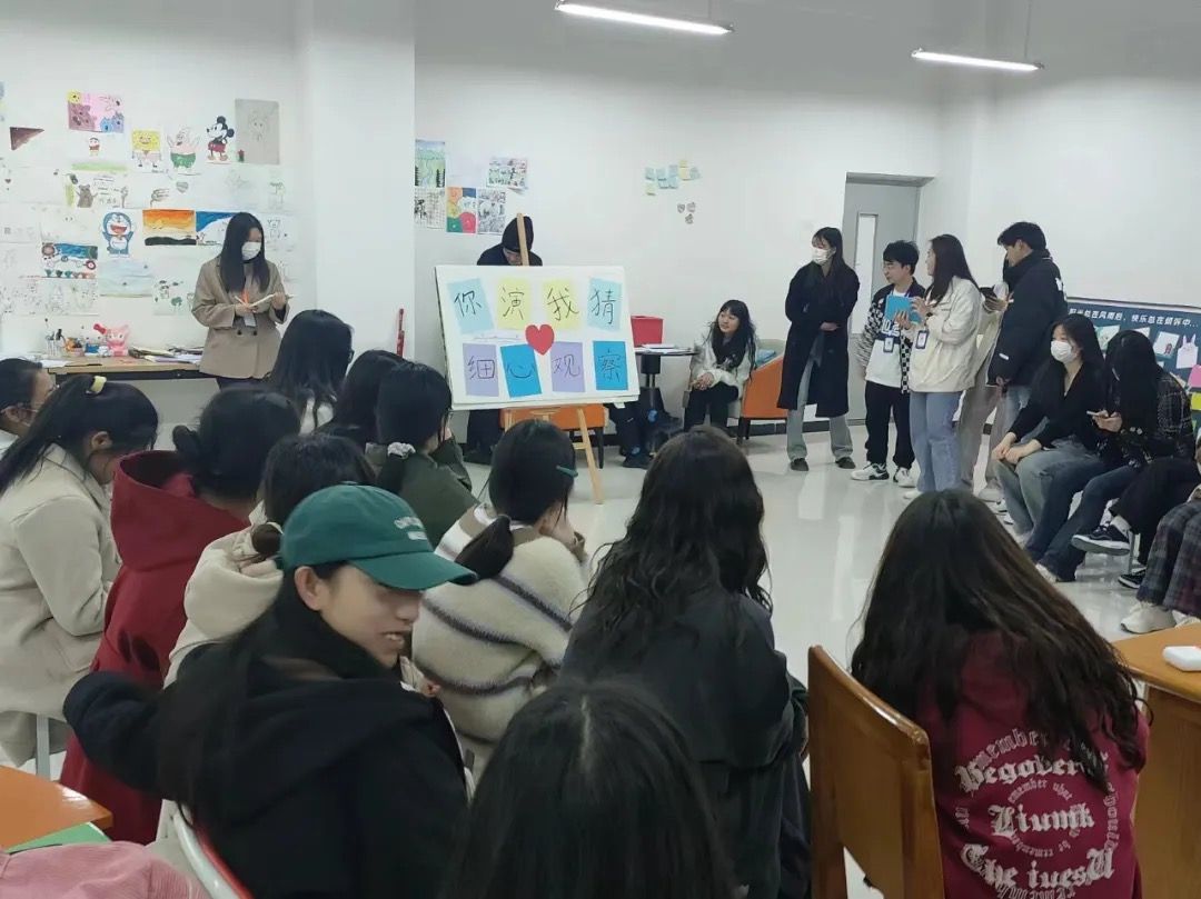 3月26日,旅游外语学院二级心理辅导站在心是工作室开展了团体心理游戏——你演我猜 细心观察。我院30余名同学在心教部的带领下积极报名参与。