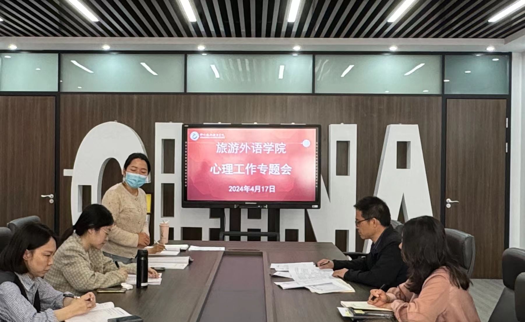 为提高学院学工队伍对心理健康教育工作的思想认识,进一步明确工作重点和工作要求,推动心理健康教育工作朝着科学化、规范化、制度化和常态化的方向发展,旅游外语学院4月17日在清源楼党员活动室召开了心理健康教育专题工作会。旅游外语学院党总支书记肖磊和全体专兼职辅导员参加,团总支书记刘晓丹主持会议。