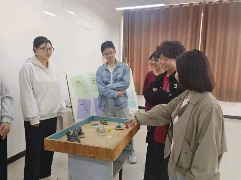 为了进一步加强大学生心理健康教育工作,有效帮助大学生在活动和实践中增强心理调适能力,通过人际支持激发内在力量,展现大学生昂扬向上的精神风貌,同时培育积极情感,实现锤炼心理素质、促进心理成长, 4月29日上午,23级商务英语1班在心是工作室开展了“心灵使者心理素质提升项目”——“齐心共建沙盘,开启心灵之旅”,该活动由辅导员刘好好老师策划并指导。