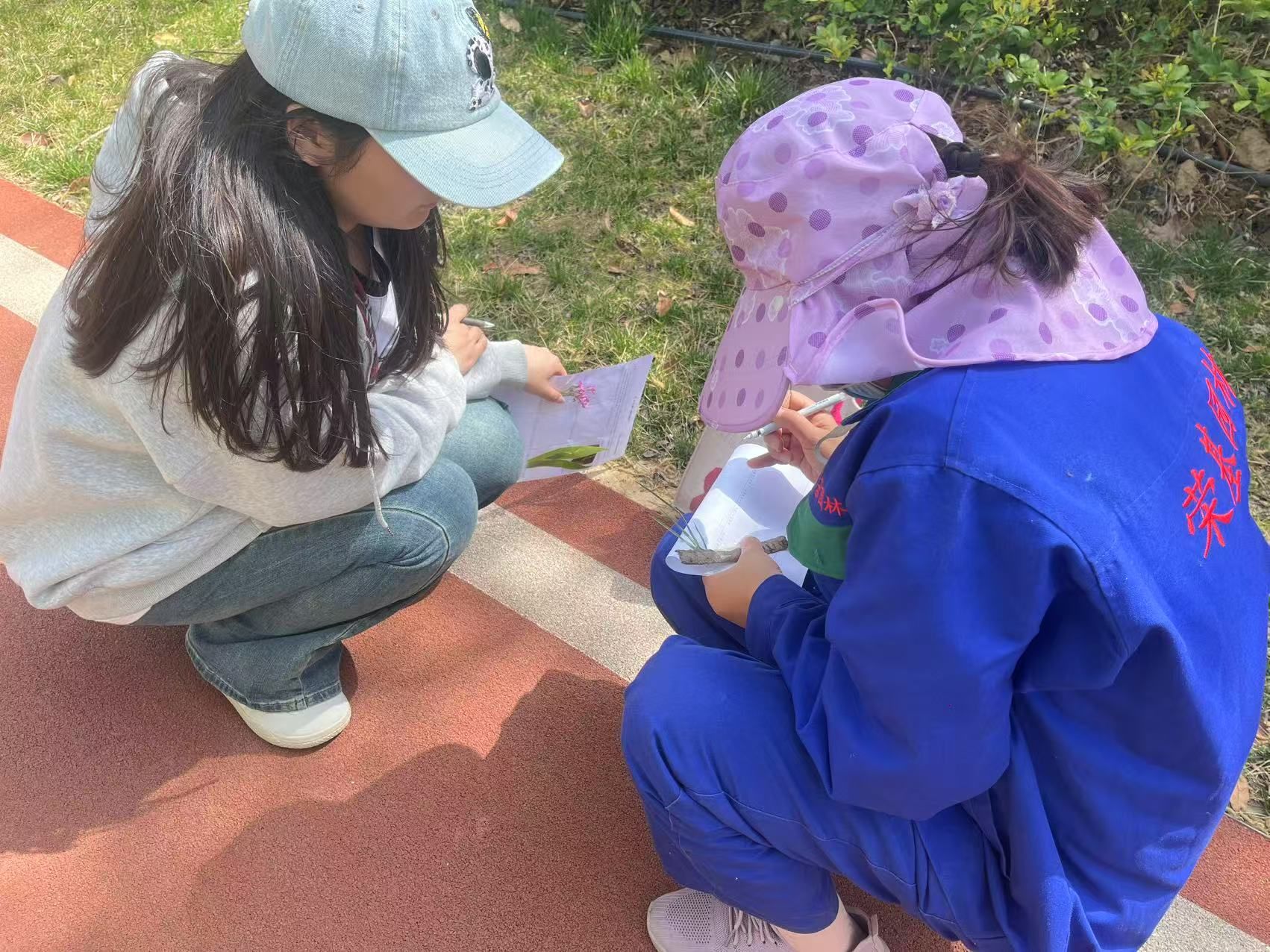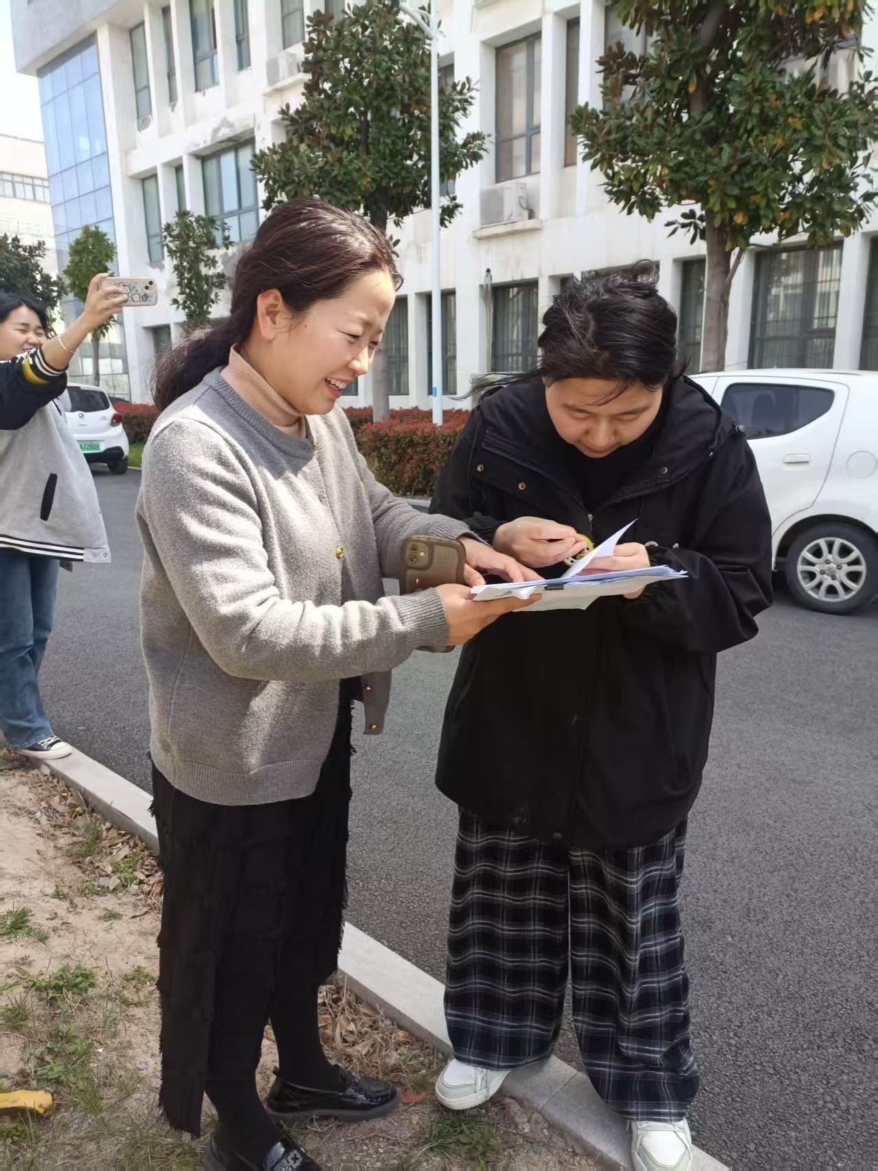活动中,同学们需要在初春的校园里寻找“宝藏”,包括:“闻起来甜甜的东西”“彩色的东西”“枯萎的东西”“充满生命力的东西”“和自己今日心情很像的东西”,以及“寻找一位陌生人写下一句话”等等。大家手持白色A4纸,漫步在校园的各个角落,用感官去发现平时容易被忽略的细节。有的同学在花丛中找到了散发着清香的花朵作为“闻起来甜甜的东西”,有的拾起一片落叶作为“枯萎的象征”,还有的同学在操场边石缝里发现了蓬勃生长的新芽,感受到生命的力量。在寻找陌生人写一句话时,同学们克服社交恐惧,主动与他人交流,邀请路过的老师、同学或工作人员写下祝福或感想。这一任务不仅锻炼了大家的沟通能力,也拉近了人与人之间的距离。