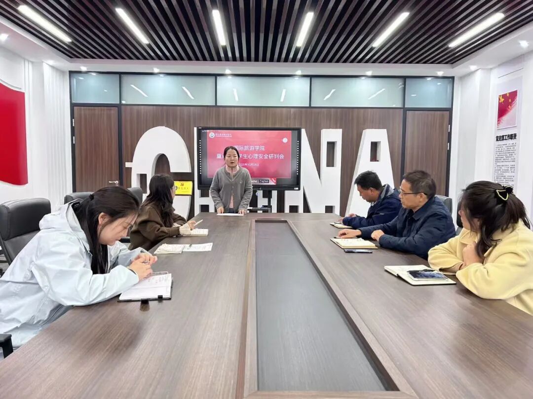 为落实高校心理健康教育工作要求,加强重点关注学生心理服务与危机干预,国际旅游学院于10月24日在清源楼党员活动室召开重点关注学生心理研判会。学院党总支书记肖磊、团总支书记刘晓丹、学工办代主任沈晋旭及全体辅导员参会,学院心理工作负责老师刘平平主持会议。