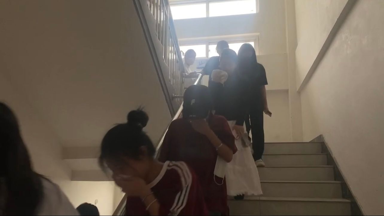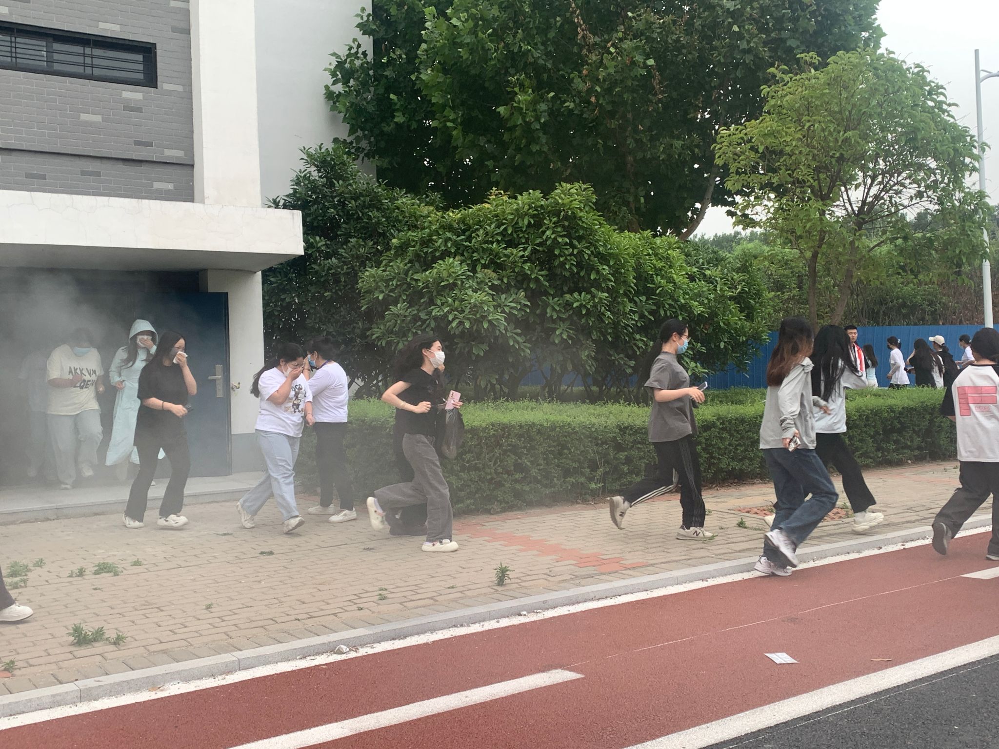 下午4点,随着一阵急促的警报声响起,演练正式开始。学生们在老师们的引导下,迅速而有序地按照疏散路线撤离。在演练过程中,学生们严格遵守演练规则,保持冷静、不慌乱,用湿毛巾捂住口鼻,低头弯腰,沿着指定路线迅速撤离到安全区域。 与此同时,刘平平老师在西篮球场指导学生从东1门入场,并逐一核点学生人数。他们认真履行职责,确保每个学生都安全撤离,并在第一时间将核验结果汇报。