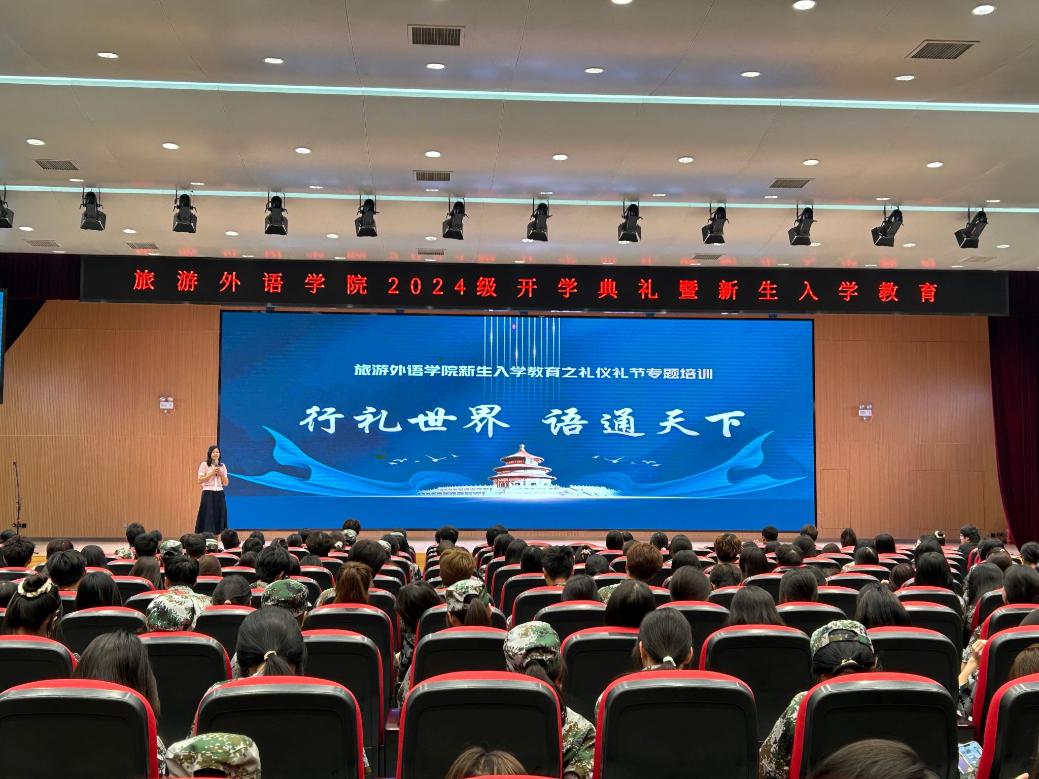 为培养新生的礼仪意识,提升综合素质,为未来的大学生活乃至职业生涯奠定坚实的基础,9月27日,旅游外语学院在后勤楼二楼报告厅开展2024级新生入学教育之礼仪礼节教育活动。旅游外语学院团总支书记刘晓丹以“行礼世界 语通天下”为主题开展教育,24级全体新生参与。