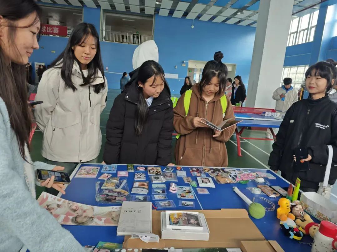 同学们充满了激情和活力,积极参与其中。一个个摊位井然有序地排列开来,纷纷摆出自己的“藏品”:文创产品、各类图书、明星周边、网红单品、生活日用品、运动器材、手办玩偶……琳琅满目的物品令人目不暇接,前来“淘宝”的同学络绎不绝。很多摊主还借此机会大展才艺,为“跳蚤市场”再添一把火,各式各样的“跳蚤摊位”引人注目,同学们积极地向顾客推销自己的物品,交流声、欢笑声不绝于耳。