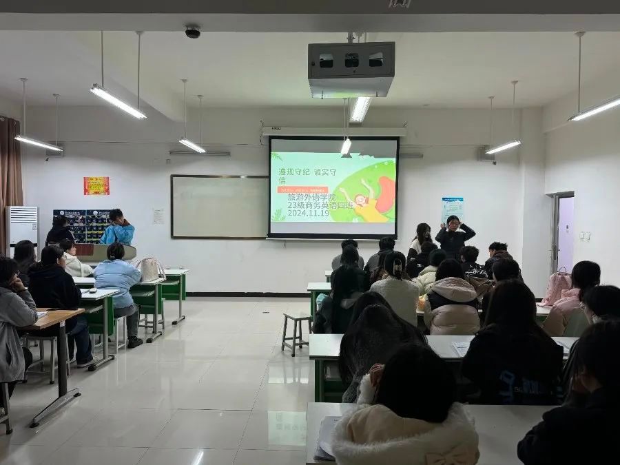 为了进一步提升学生在网络时代的自律意识和安全防范能力,旅游外语学院于11月18日-11月19日在清源楼召开了2024-2025学年第一学期第十二次主题班会。本次班会以“遵规守纪,诚实守信”和“网络安全”为两大核心主题,旨在提高学生对纪律,诚信,网络安全的认识。