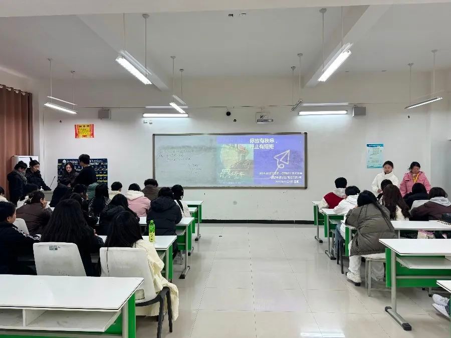 为了提升同学们的法治观念与行为规范意识,12月2日-3日,旅游外语学院于清源楼组织各班召开了“2024-2025学年第一学期第十四次班会”。本次班会紧扣“宪法晨读与学唱”和“停放有秩序,行止有规矩”两大主题展开。