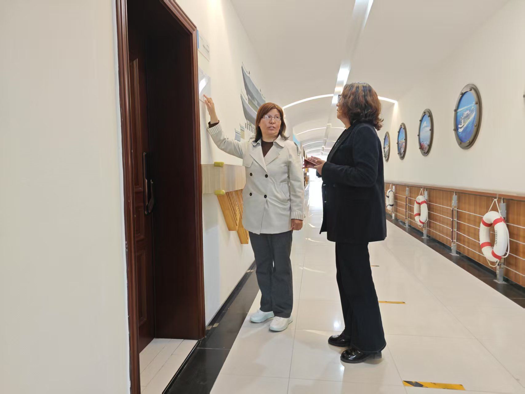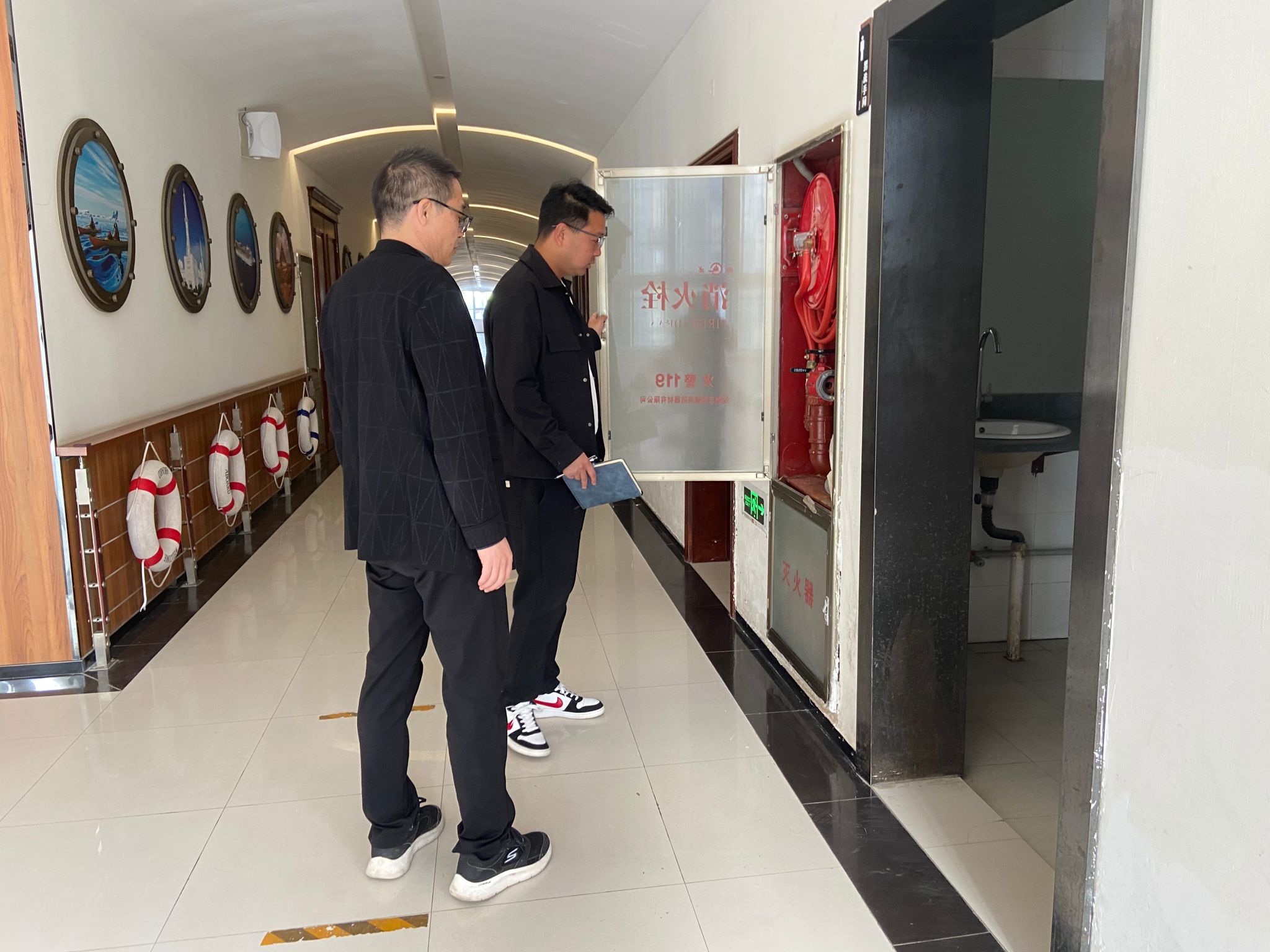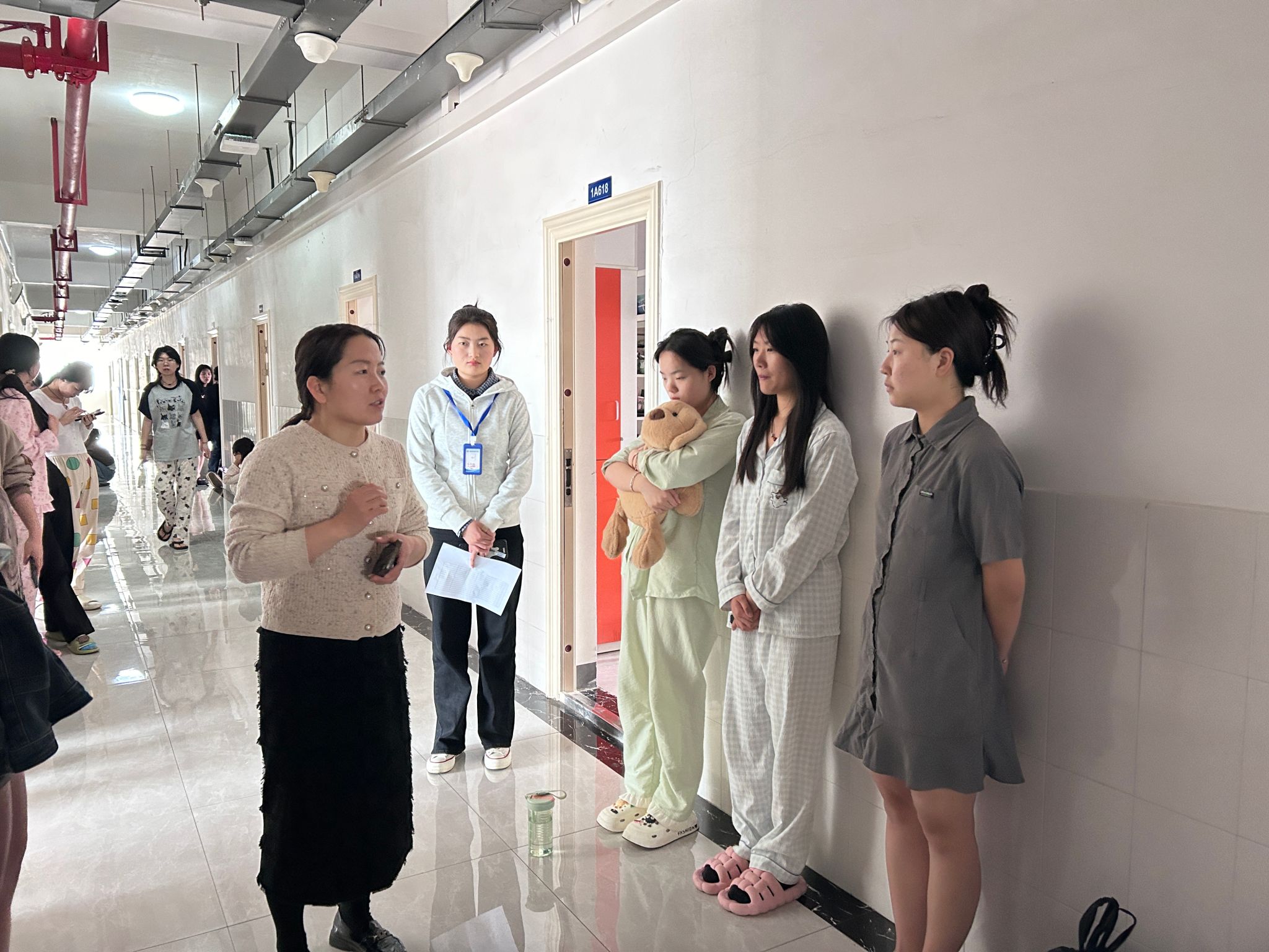 检查过程中,肖磊一行重点核查了教学楼内的消防设施,包括灭火器的完好性、消火栓检查记录卡的填写情况,以及安全通道是否畅通、是否存在堆放杂物或私拉电线等安全隐患。同时,还对教室、办公室的电器设备断电情况进行了逐一确认,确保“人走电停”,杜绝火灾隐患。刘平平对宿舍内的安全设施、卫生状况、潜在的安全隐患进行了细致排查,并对学生进行了宿舍高空坠物安全教育