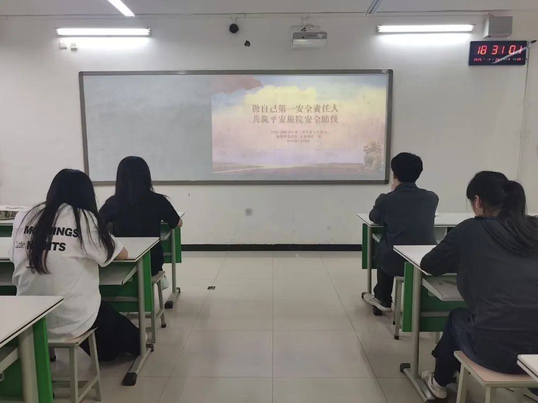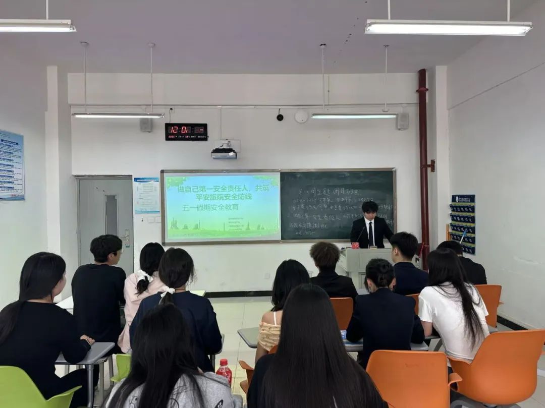 旅游外语学院于4月25日-27日组织全院各班级召开“五一”假期安全主题教育班会。班会围绕人身安全教育、预防溺亡安全教育、用电安全教育、消防安全教育、食品安全教育、交通安全教育、网络安全教育、防盗防骗教育、反邪教教育、防极端天气教育、假期留校学生安全教育等,全覆盖强化学生安全防范能力,为假期安全保驾护航。