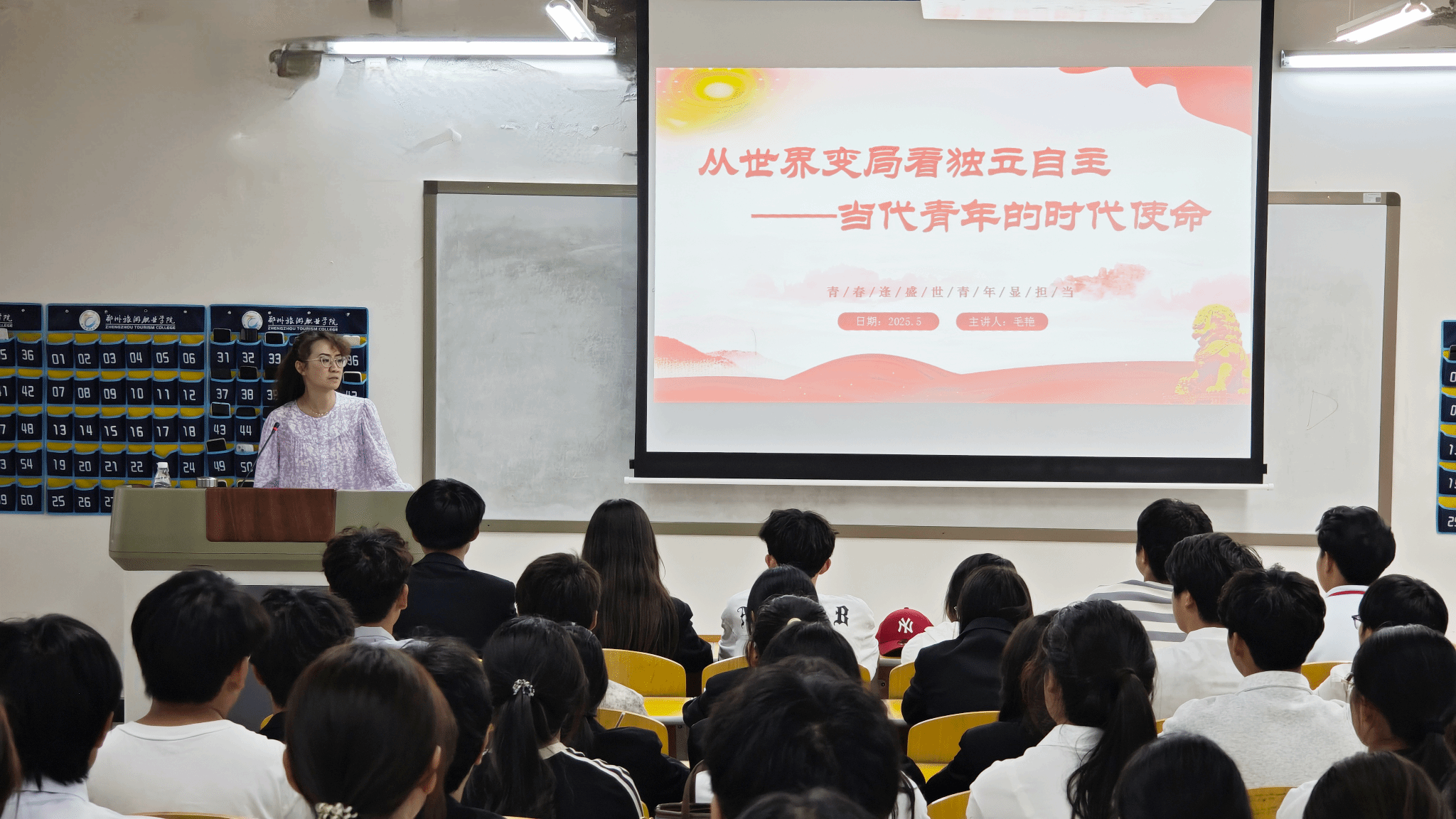 毛艳从当前国际形势切入,结合百年未有之大变局,深入浅出地阐释了独立自主精神对国家发展和个人成长的重要意义。她指出,在全球化的今天,青年学生不仅要关注世界动态,更要坚定文化自信,保持独立思考能力。