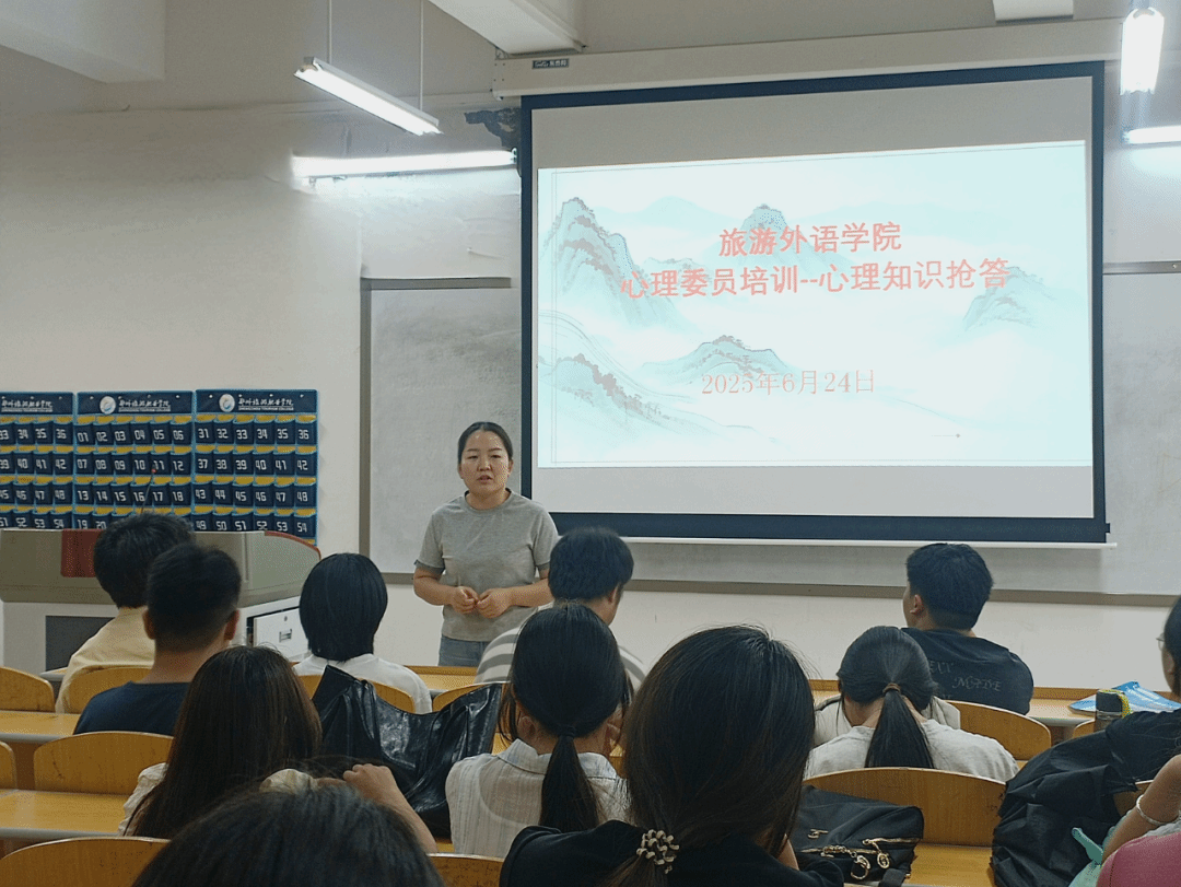 为深化心理健康教育,构建全方位心理育人体系,旅游外语学院于6月24日在清源楼211教室开展“心理委员培训——心理知识抢答”主题活动。学院辅导员刘平平担任主持,30余名心理委员与宿舍信息员化身“心灵守护者”,在知识与趣味的碰撞中提升心理服务能力。