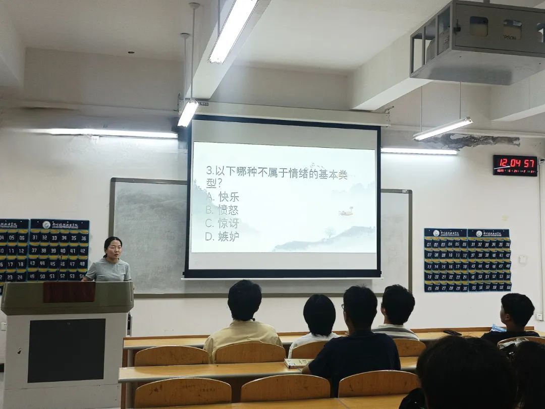 随后的知识抢答环节将现场气氛推向高潮。活动精心设计必答题、抢答题与风险挑战题,题目覆盖心理健康标准、危机干预流程等内容,兼具知识性与实践性。随着抢答器声此起彼伏,同学们全神贯注、争相应答,获胜者获赠小礼品,答错者也在老师的即时解析中查漏补缺。现场思维碰撞激烈,学习氛围浓厚。