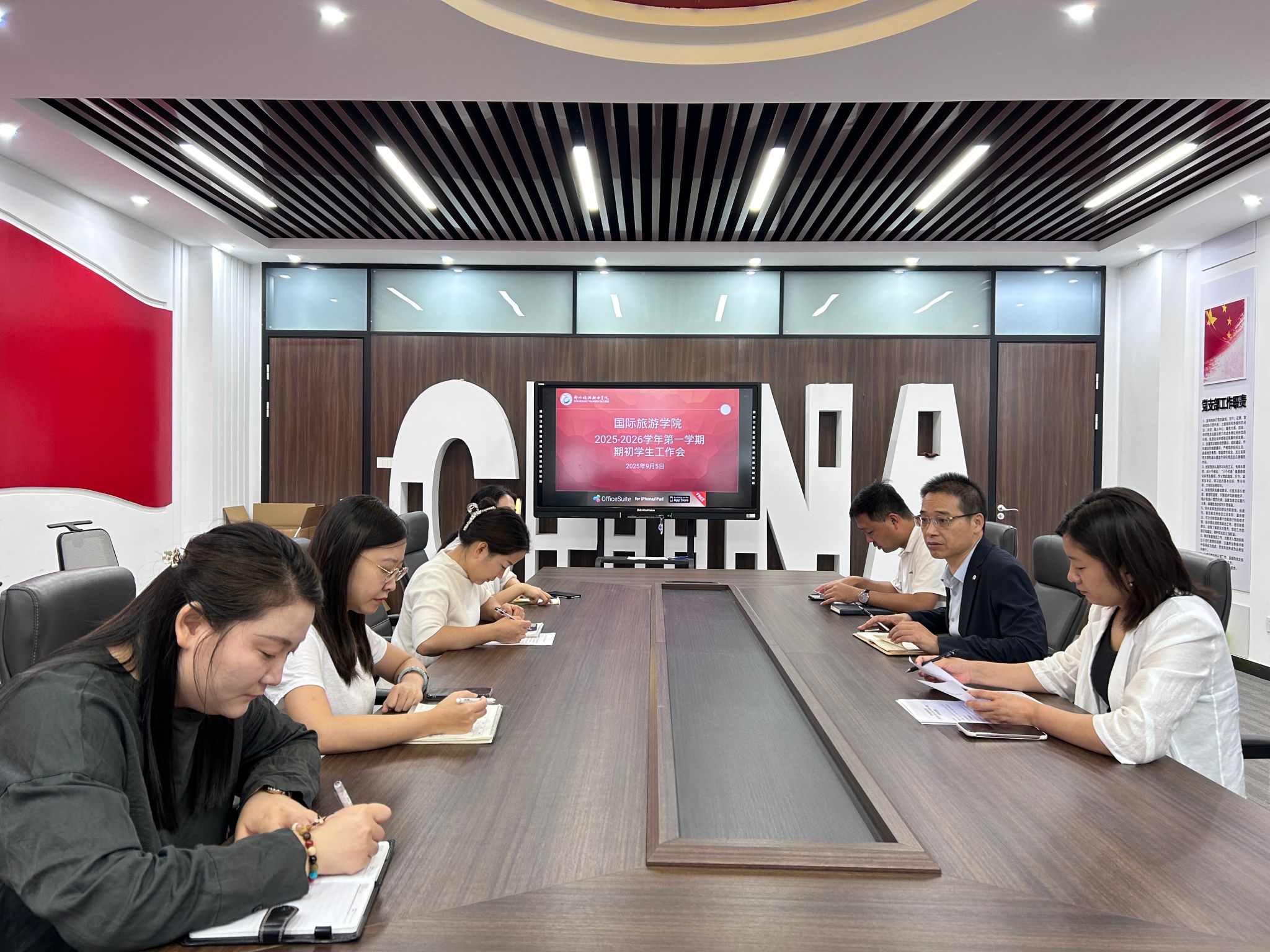 为统筹部署新学期学生工作,明确重点任务、凝聚工作合力,确保各项学生工作有序开局,国际旅游学院于9月5日在党员活动室召开2025-2026学年第一学期期初学生工作会。学院党总支书记肖磊、团总支书记刘晓丹、学工办代主任沈晋旭及全体辅导员参加会议。