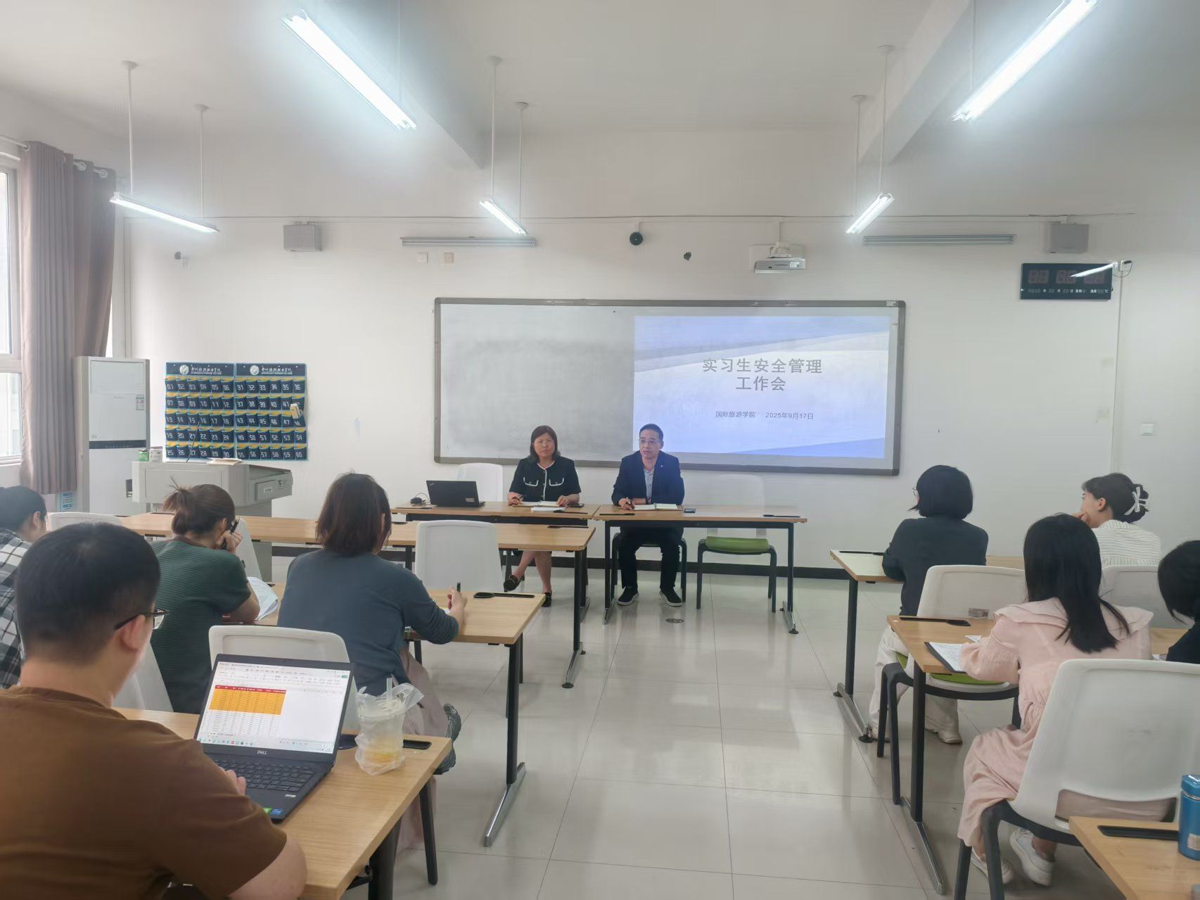 9月17日,国际旅游学院于4B207教室召开实习生安全管理工作会议。学院党总支书记肖磊、副院长张丽君出席会议,全体2023级高职及21级五年制学生实习指导教师参会,共同围绕实习生安全管理与教育指导工作进行深入研讨和部署。会议由副院长张丽君主持。