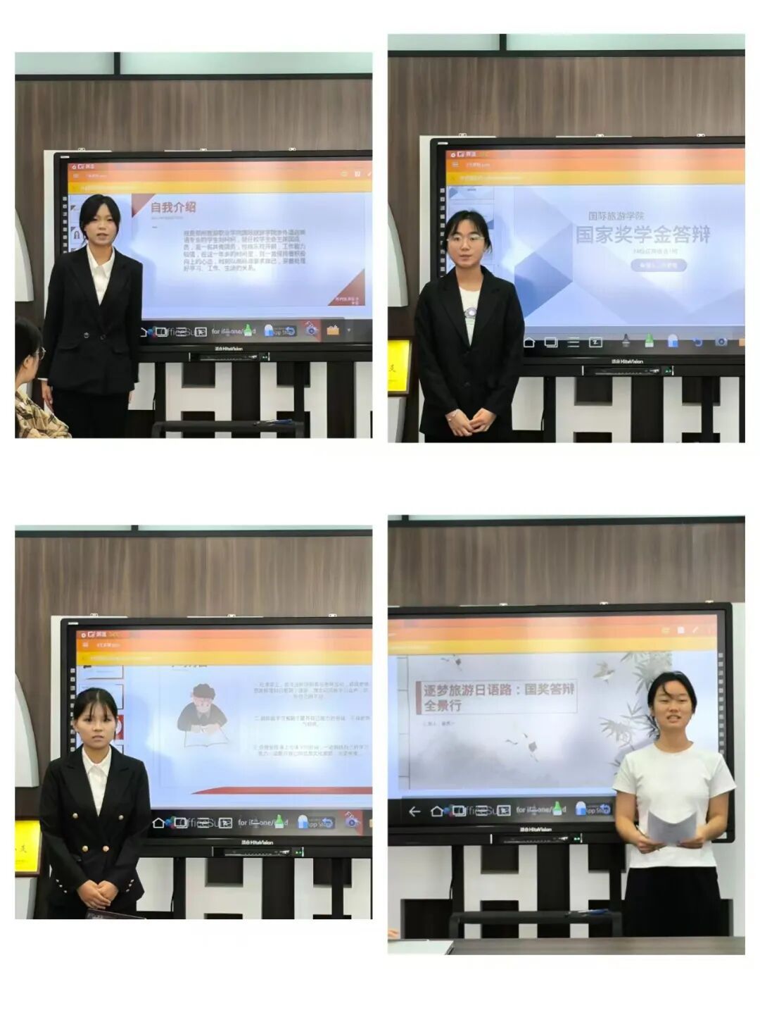 本次答辩采用线上线下相结合的方式进行,在校生进行现场答辩,实习生通过线上方式参与。8位候选人依次围绕学业成绩、社会实践、志愿服务、思想品德及未来发展规划进行汇报,全面展现了国际旅游学院学子扎实的专业基础、突出的综合素养和积极向上的精神风貌。