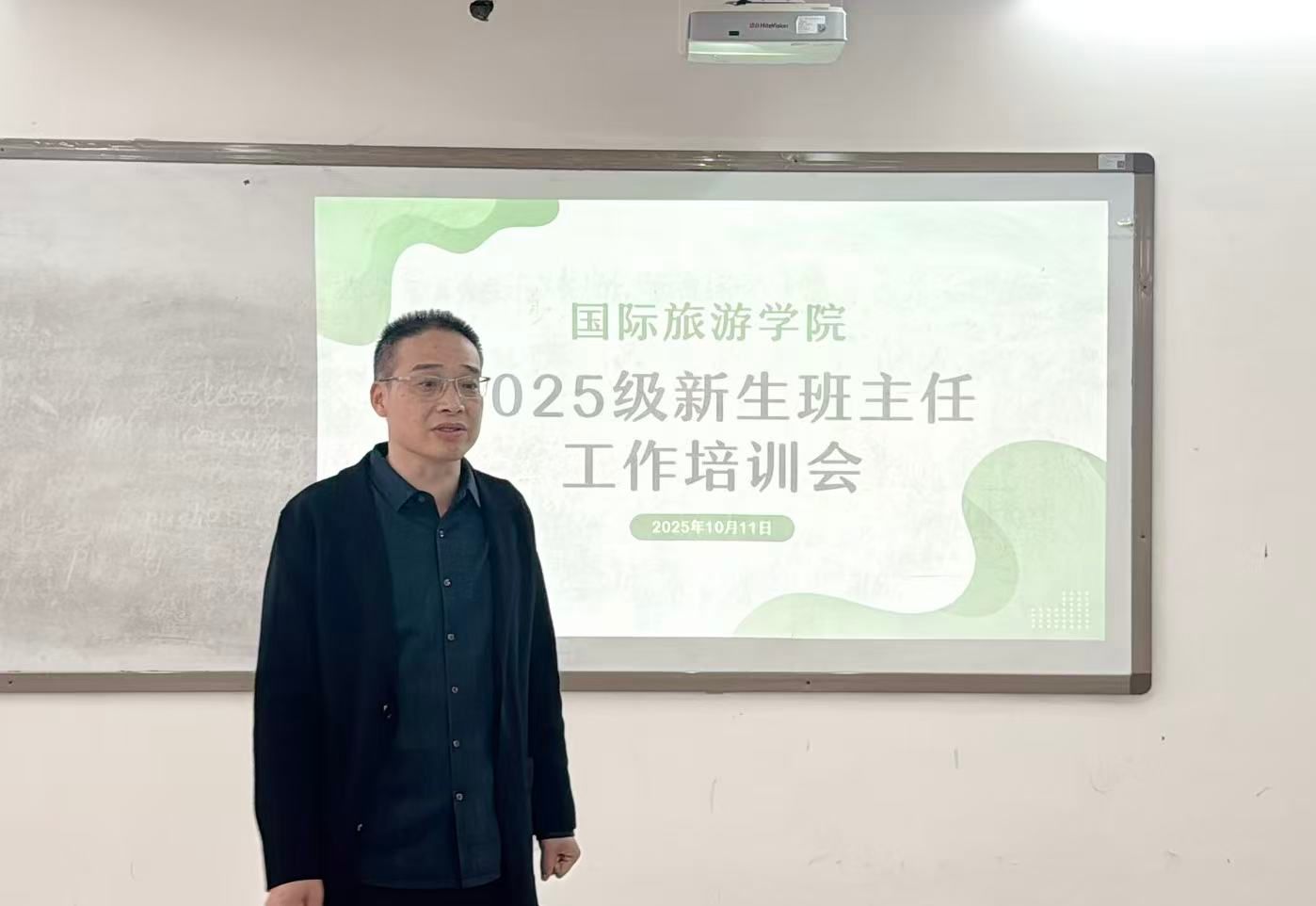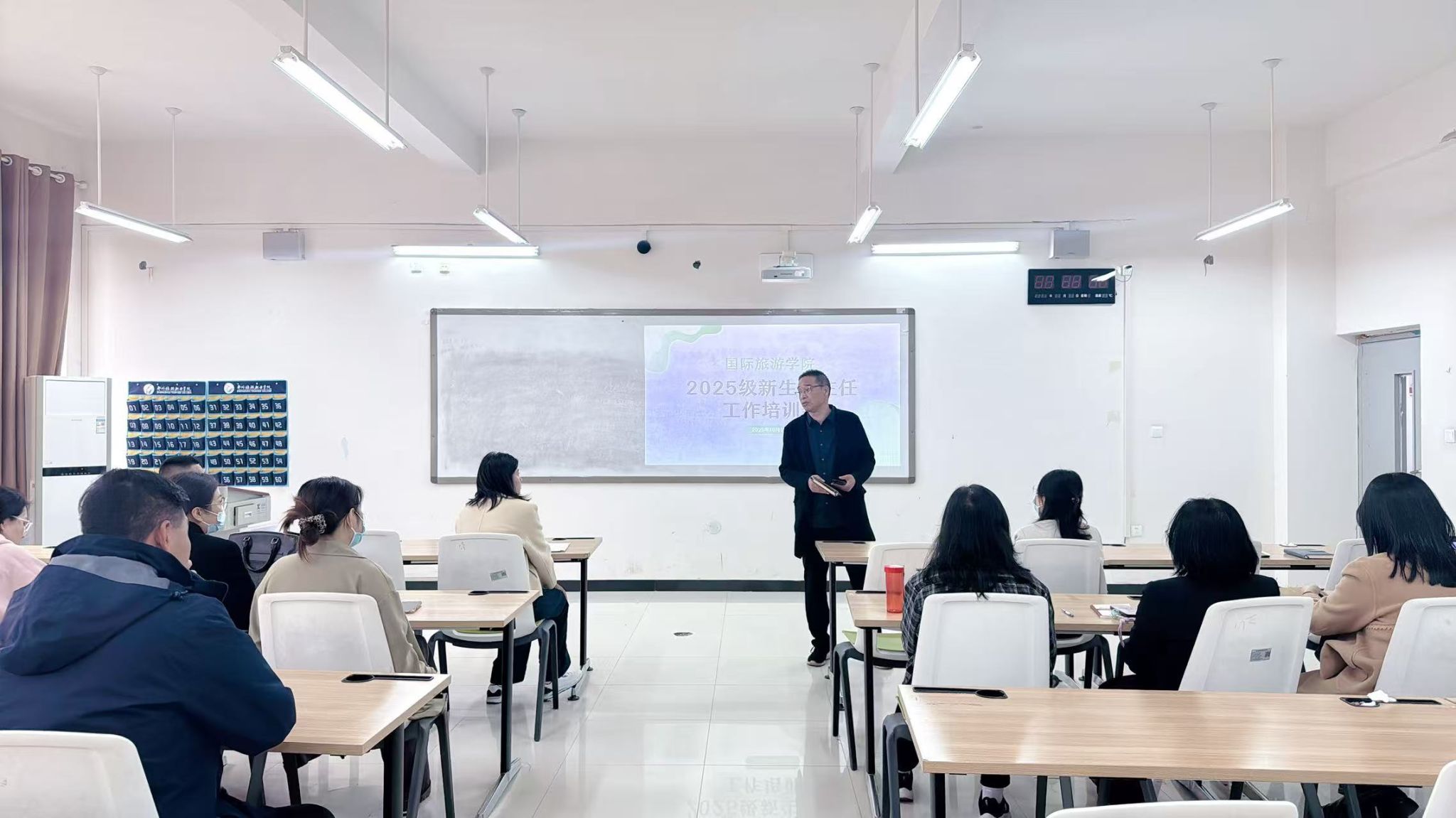 为抓实2025级新生入学教育,规范班会组织、提升班主任育人质效,10月11日,国际旅游学院在清源楼207教室召开2025级新生班主任工作培训会。学院党总支书记肖磊、团总支书记刘晓丹及2025级全体班主任参加。