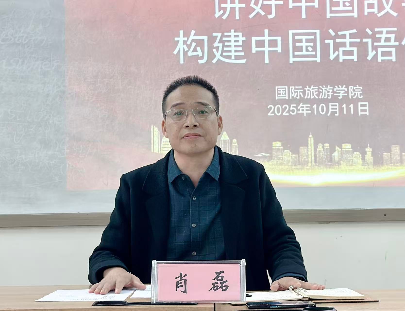 肖磊在总结讲话中强调,讲好中国故事是落实立德树人根本任务的重要抓手,必须将其贯穿到党建与学生工作的全过程。他提出三点要求:一是要强化思想引领,充分发挥外语+旅游的学科优势,将中国故事讲述融入主题班会、团日活动、社会实践等环节,引导学生增强文化自信;二是要建强育人阵地,依托学生党支部、团支部、社团等平台,组织开展“用外语讲好中国文旅故事”等特色活动,打造具有学院特色的思政品牌项目;三是要突出实践导向,鼓励学生在专业实习、志愿服务、国际交流中主动传播中华优秀传统文化,展现新时代中国青年的责任担当。