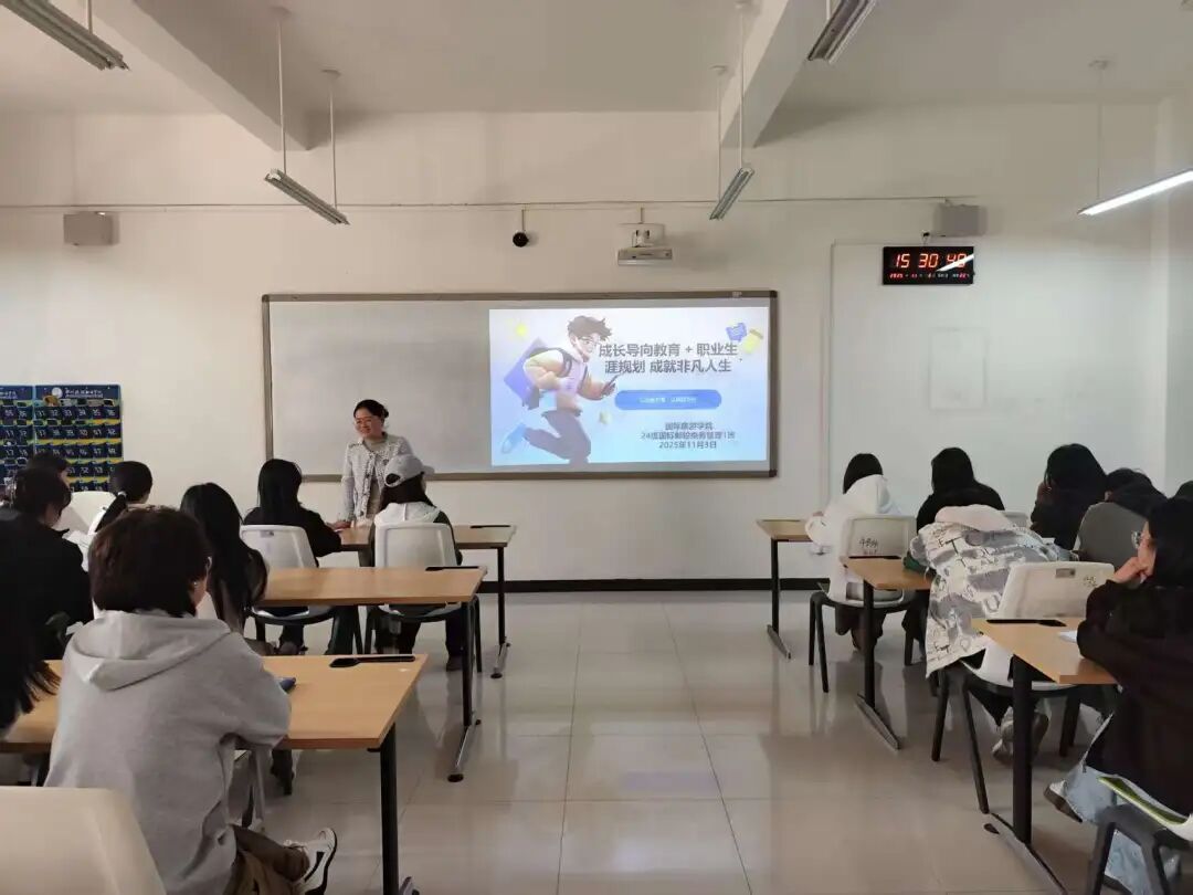 为帮助学生明晰职业方向,激发成长内驱力,11月3日,国际旅游学院于清源楼组织22级五年制旅游英语1班、2024级各班召开了“成长导向教育”主题班会。