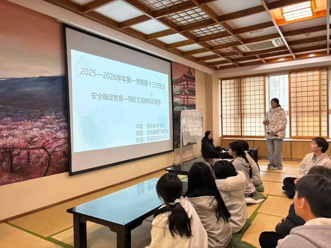 为贯彻落实校园安全稳定教育部署要求,切实增强学生艾滋病防治意识与自我保护能力,12月1日,国际旅游学院面向大一学生组织开展了“安全稳定教育——预防艾滋病知识宣传”主题班会。
