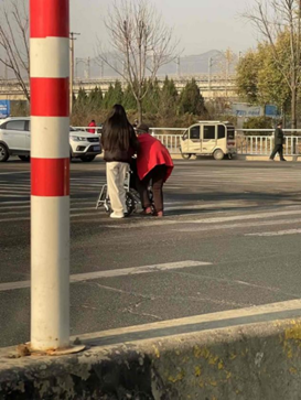 日前,2024级商务英语3班的郑欣茹同学在返乡途中,用手机记录下感人一幕:在车流不息的太行路边,一位手推轮椅的老人步履蹒跚,行动艰难。危急时刻,一位身着黑衣的女生快步上前,稳稳扶住轮椅,将老人安全护送至人行道,随后悄然离去。郑欣茹只来得及拍下她匆匆的背影。这位未留姓名的“身边雷锋”,以自然而果断的行动诠释了新时代青年的善良与担当,也让暖意在人心中静静流淌。