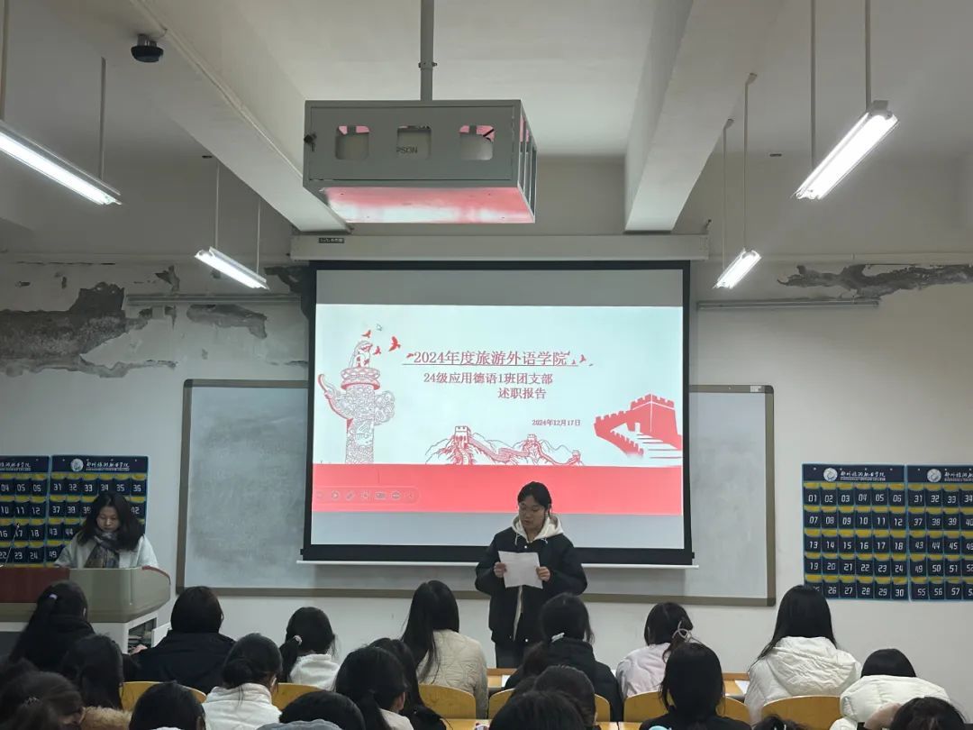 为了促进团组织内部的沟通与交流,提升团支部的执行力和创新能力,确保各项团学工作能够扎实有效地开展,12月17日,旅游外语学院于清源楼211教室召开了2024年度团支部书记述职评议大会。旅游外语学院团总支书记刘晓丹、全体在校班级团支部书记以及团干代表共同参会,本次大会由团总支办公室副主任代佳雪主持。