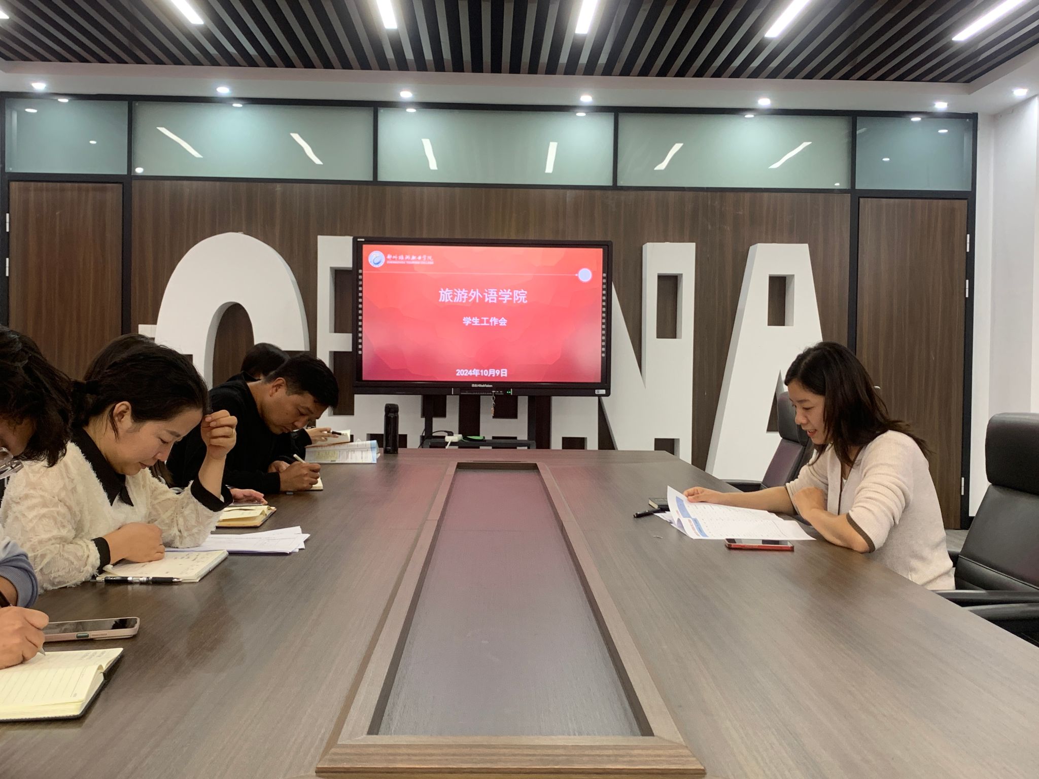 为了更好地推进旅游外语学院学生工作,10月9日,旅游外语学院在清源楼党员活动室召开学生工作会。团总支书记刘晓丹、全体专兼职辅导员、学生助理参会。