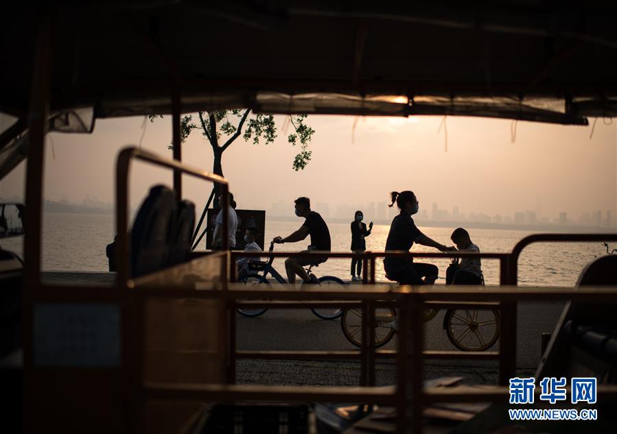 5月5日,人们在武汉东湖绿道游玩。“五一”小长假期间,湖北省共接待游客735.86万人次,实现旅游综合收入24.53亿元,人均花费约333.4元。 新华社记者 肖艺九 摄