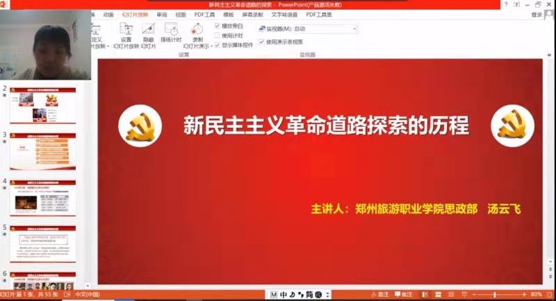 2021年4月8日,团市委邀请pp电子思政部教师汤云飞老师在钉钉平台上为团市委青马班学生开展了一场题为“新民主主义革命道路探索的历程”的线上党史讲座。