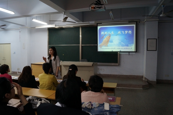 本次职业生涯规划大赛以“规划人生 放飞梦想”为主题,由思想政治理论课教学部承办。经过前期的精心准备、大力动员,各系都组织了精兵强将来参与此次大赛。复赛分为书面作品和现场展示两部分。思政部的老师们已经事先为所有的书面作品打好了分数,与现场展示的成绩相结合即为复赛的总成绩。
