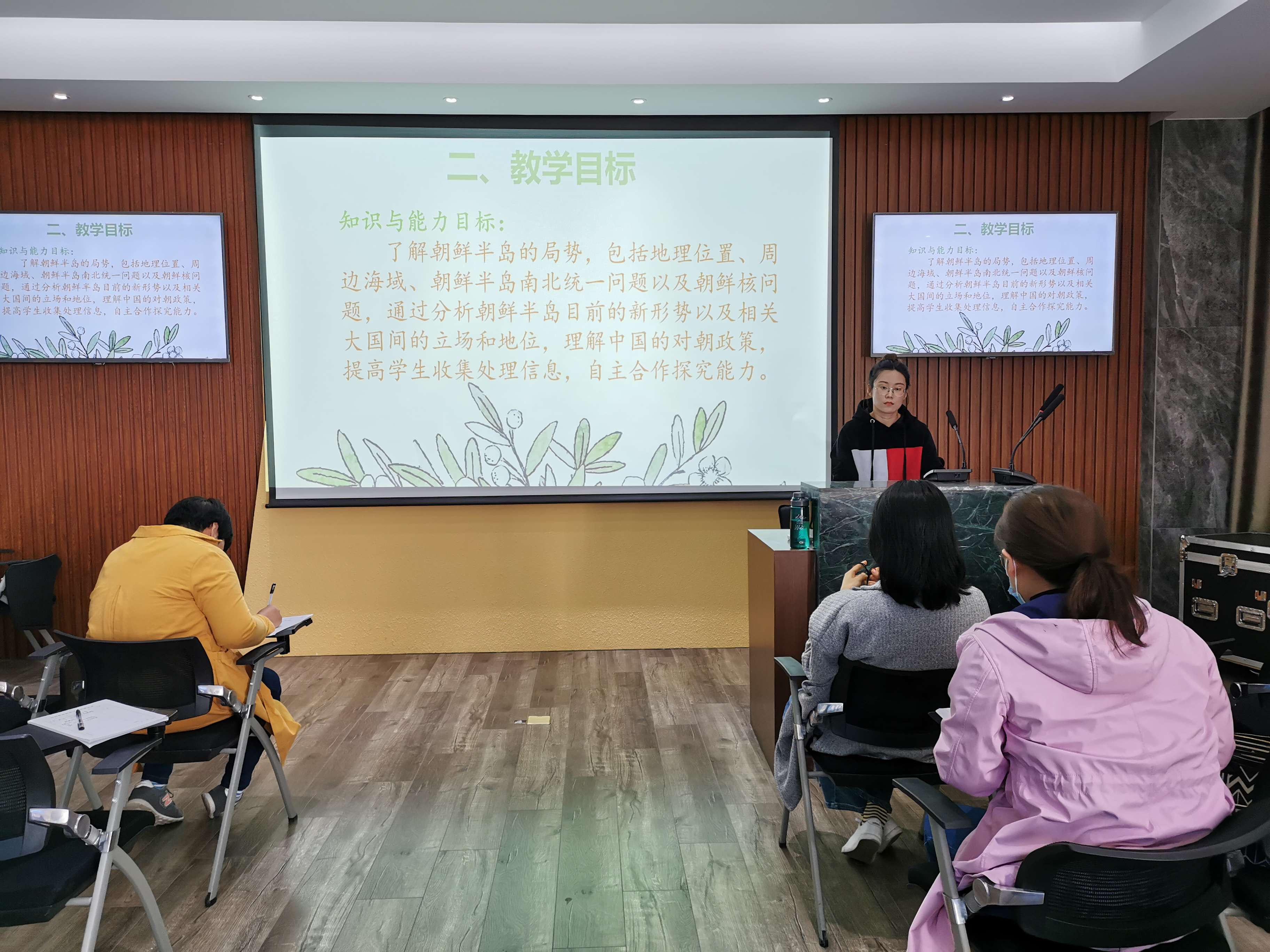 金秋送爽,丹桂飘香。为了进一步提高新教师的专业素养和教学能力,展示教师风采,营造教师间积极进取、相互学习、交流合作的浓厚教研氛围。10月28日上午,思政部形势与政策教研室在模拟联合国实训室开展新教师说课活动,武优老师结合本学期形势与政策课程专题进行说课展示,教研室全体教师参与听课评课。