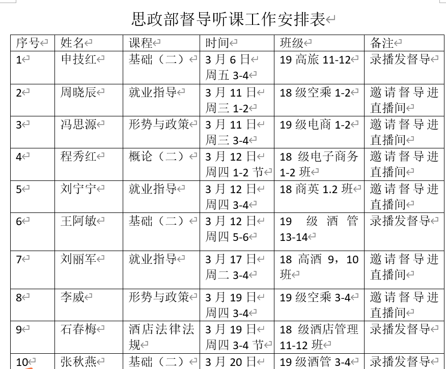三是建立督导机制,保证教学效果。部门制定了线上督导计划,将对每位思政课教师进行听课督导,了解线上教学开展情况,发现问题,及时进行解决,确保线上教学的效果“不打折”。