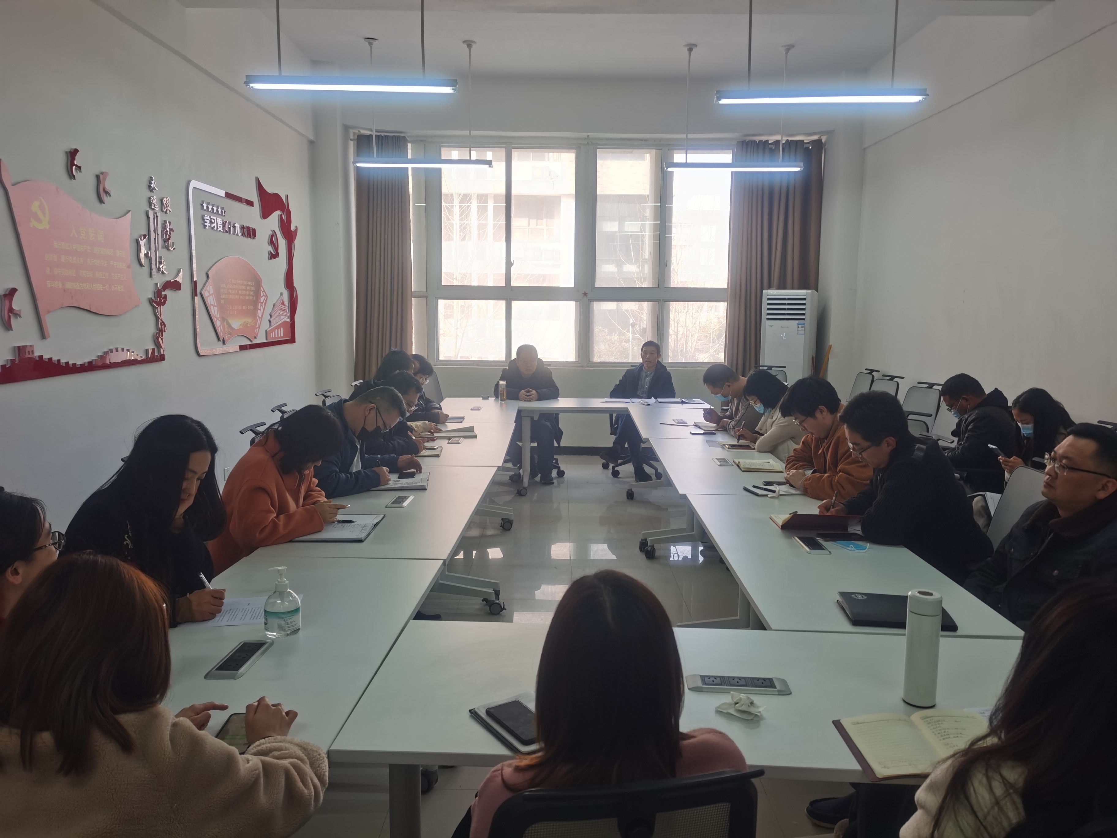 会上李院长首先发表了讲话,他指出新学期新气象,虽然我院面临新的挑战,但新挑战必然伴随新的机遇,我们要变挑战为机遇,需要全体教职工与时俱进,守正创新,不断提升自身水平,重视职称评审 。紧抓办学质量为中心,希望大家都行动起来,扎实推进课程建设,确保再出精品,实现学院工作新突破,谱写新的篇章。随后胡书记围绕开学及学期党建、学生管理等主要工作,进行了安排部署。胡书记指出疫情防控时期各位教职工要严格依照学校规定,做好学生的返校复学工作将“学生安全第一位,防疫措施做到位,兼并教学与防疫,让学生健康安全的完成学业”。