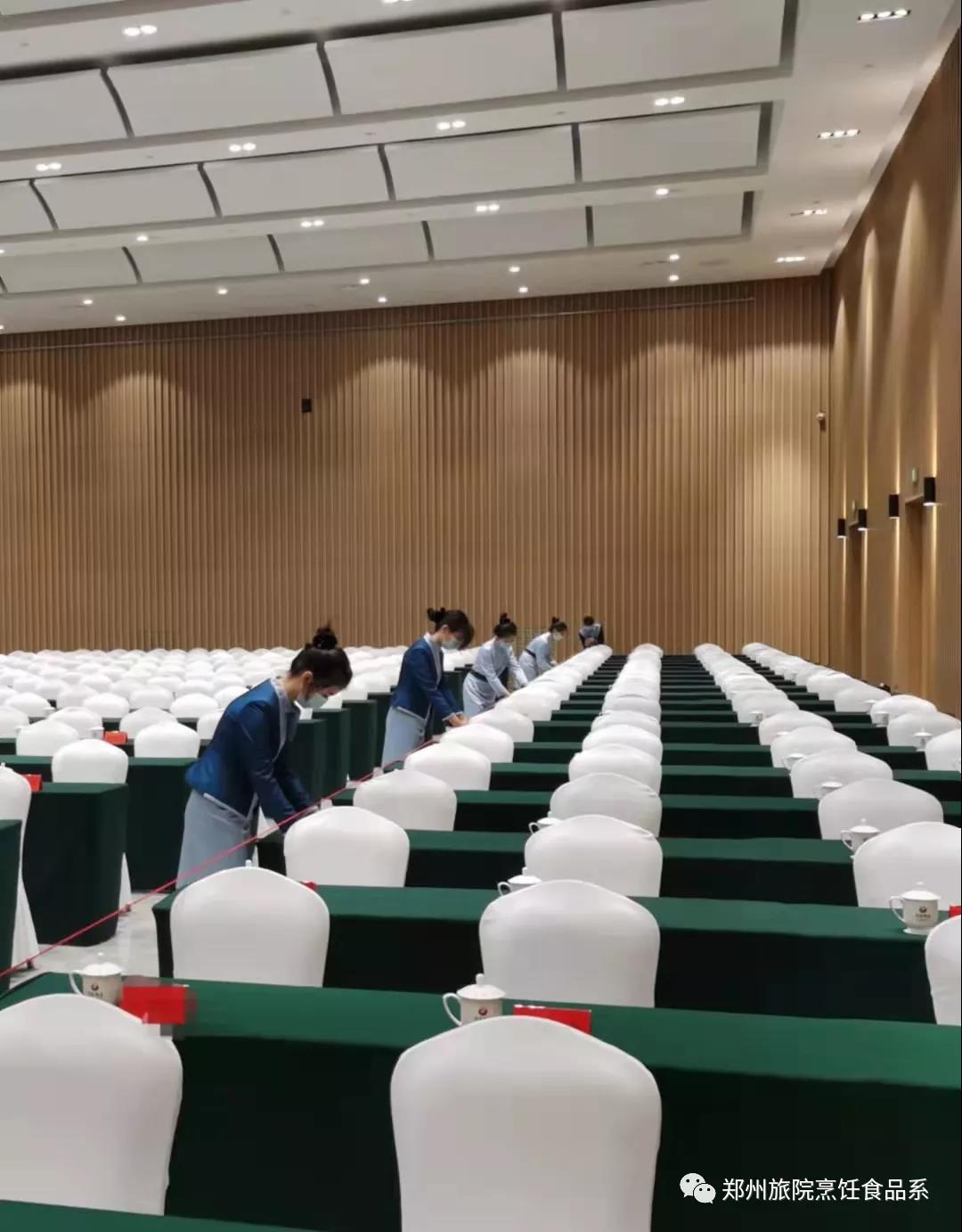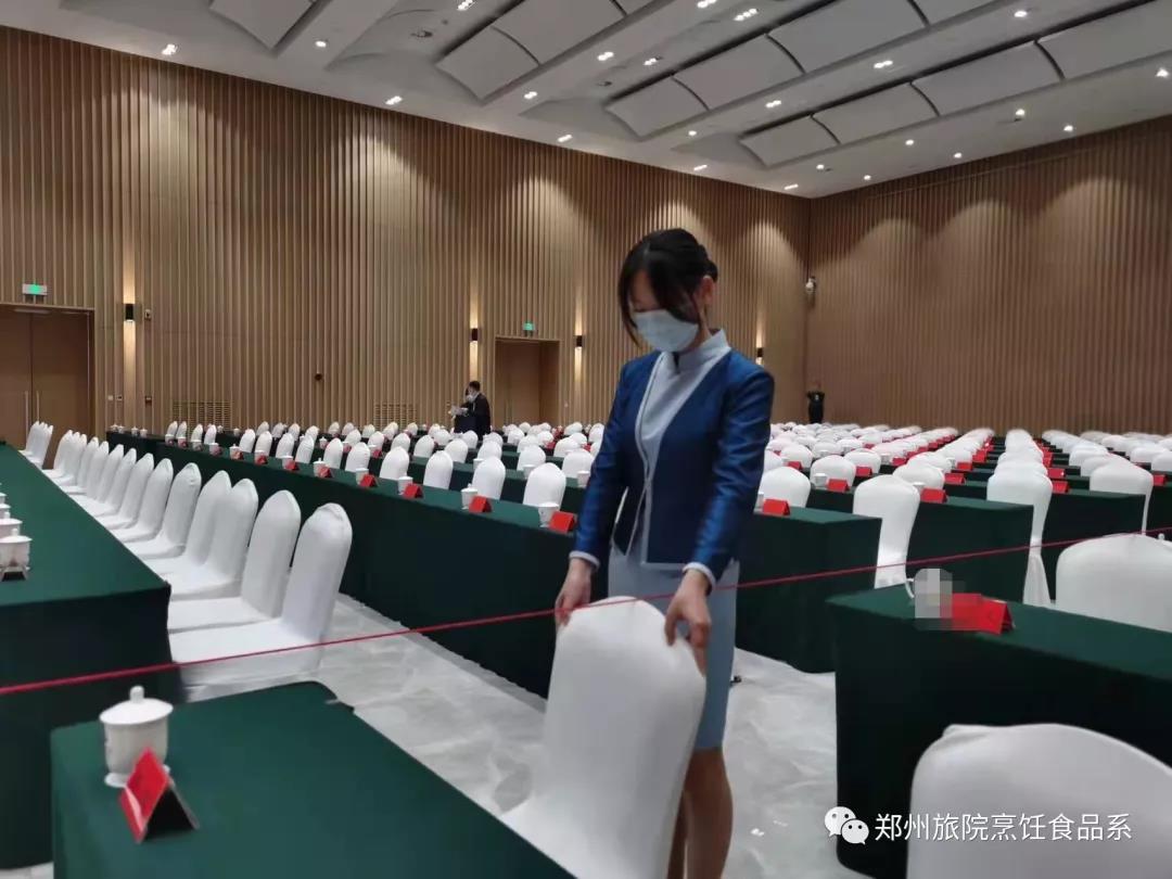时间如白驹过隙,转眼间烹饪食品学院服务河南省党代会的学子已工作了近一周有余,在服务好党代会的基础上,大家都表示学到了很多在课堂上学不到的知识,也认识到了自身的不足,感觉受益匪浅。刚到河南饭店的时候,大家对周围的一切都是比较陌生,对于自己即将入职的岗位也是抱着一种忐忑的心态。经过一天的入职培训后,大家已经对岗位职责有了初步了解,也明白了在学校学到的知识跟我所面临的实践完全不同。在经验丰富的员工的带领下,大家开始接触到了岗位工作,并很快上手。经过几天的工作,无论是迎宾还是会场布置都显得得心应手。在今后的工作中我院的优秀学子将继续在岗位中发光发热,为河南省党代会取得圆满成功献出一份力!