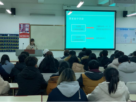 会议中,孙文文老师先向贷款学生讲解还款指南、提前还款流程等相关贷款知识,并着重强调诚信还款的重要性,使学生提高思想认识、信守承诺。会议结束后,资助助理黄妍婷、张梦园详细解答了同学们的相关问题,确保每位贷款毕业生了解相关还款流程。