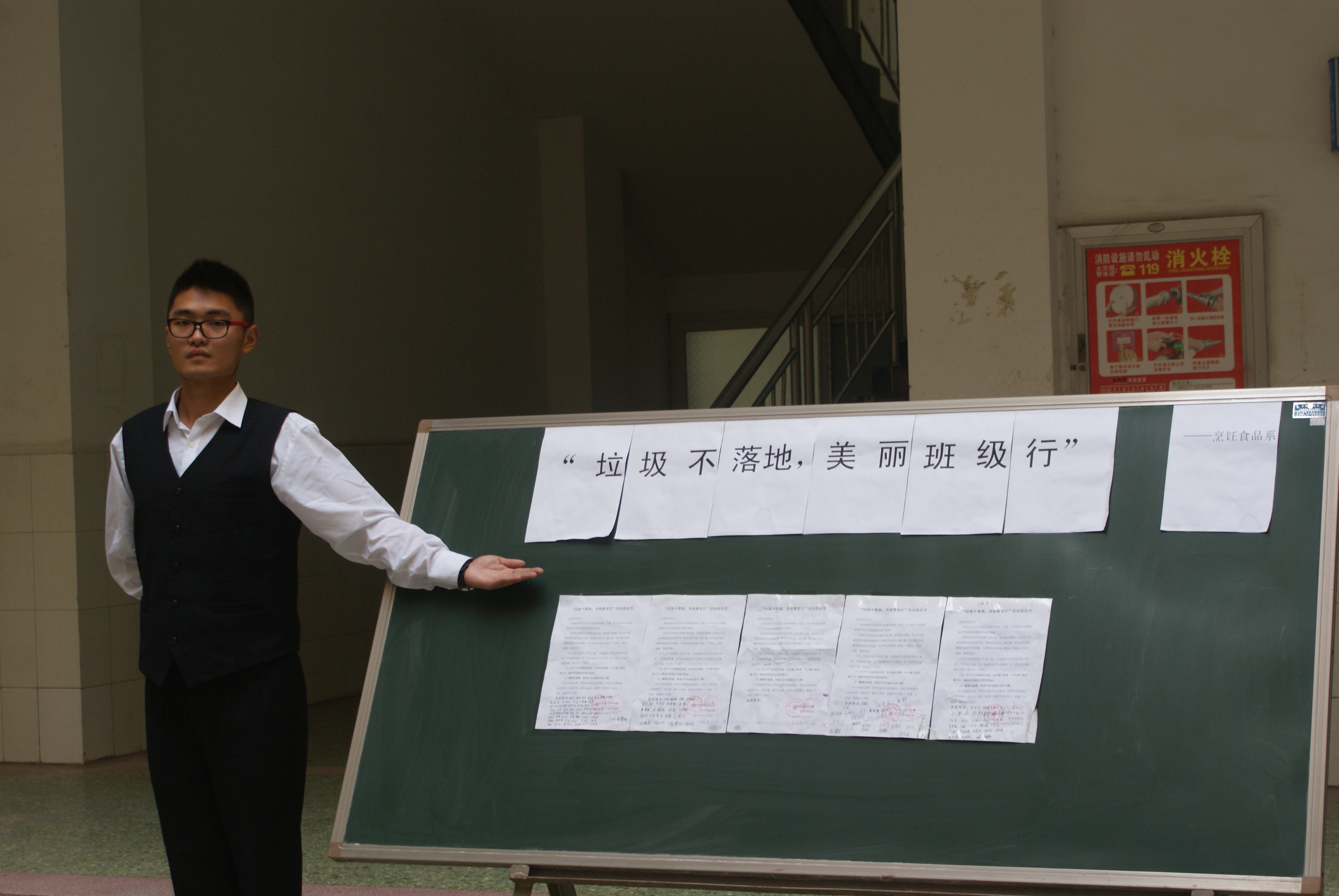为了更好的树立我院的文明形象,全面的推进我院精神文明建设,形成良好的校园精神风貌,烹饪食品系在系领导指导下和系团总支倡议下,2013年10月7日,特向全院同学发出“垃圾不落地,美丽班级行”的倡议的活动。