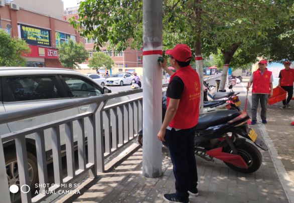 志愿者清理电线杆上的小广告