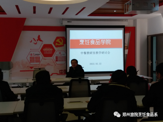 2022年2月22日下午三点烹饪食品学院党总支书记胡志霞、院长李晓东分别参加中餐教研室、西餐教研室和食检教研室的开学第一次教研活动。