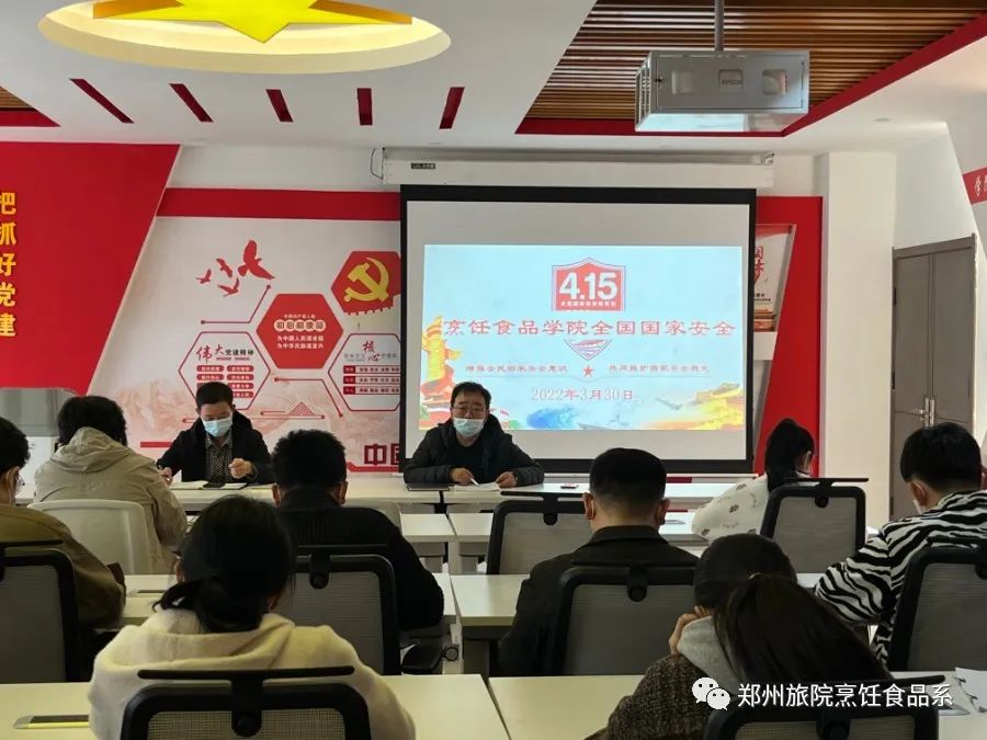 2022年3月30日下午烹饪食品学院全体教师在2B209会议室开展国家安全教育。会议由烹饪食品学院院长李晓东主持。