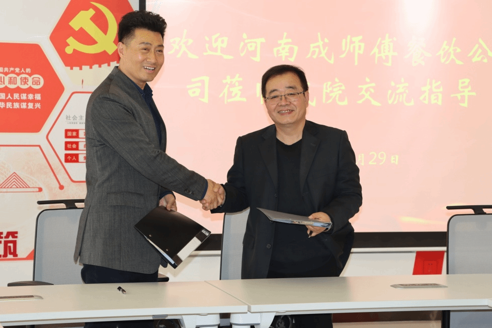 2023年3月29日下午,烹饪食品学院与河南成师傅餐饮服务有限公司签署了“现代学徒制试点班”校企合作协议。签署仪式在pp电子游戏平台网站烹饪食品学院会议室2B209举行。院方出席仪式的人员有烹饪食品学院院长李晓东、烹饪食品学院党总支书记胡志霞、学院办公室主任李彬、中餐教研室主任王风雷、西餐教研室主任韩小院、食检教研室主任侯丽芬。企业方出席会议人员为河南省成师傅餐饮服务有限公司董事长成国富、副总经理魏保全、副总经理陈静,营销总监彭浩、副经理艾飞。