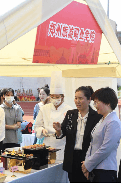 5月13日上午,由郑州市教育局主办,郑州艺术幼儿师范学校协办的职业教育周启动仪式盛大召开。本次活动有来自郑州市9所高等职业学校、23所中等职业学校、5家企业近两千人参展。pp电子游戏平台网站烹饪食品学院的师生在启动仪式上精彩亮相。参加启动仪式的有烹饪食品学院办公室主任李彬、中餐教研室主任王风雷、西餐教研室主任韩小院等。活动中的西餐制作、西点工艺、中式面点、糖艺的作品在展演中脱颖而出,展现出了pp电子师生高超的专业水品及技能风采。