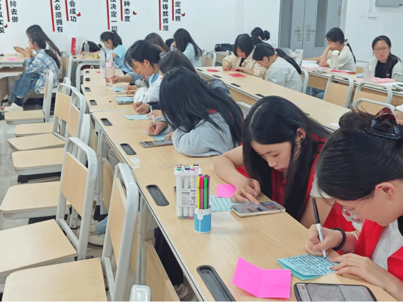 活动现场,同学们热情高涨,充分发挥创意,用彩笔、彩纸、贴纸等材料精心制作贺卡。有的同学绘制出与母亲温馨相处的场景,有的则写下对母亲感恩与祝福的话语。大家一边制作,一边分享和母亲的点滴故事,现场氛围温馨感人。